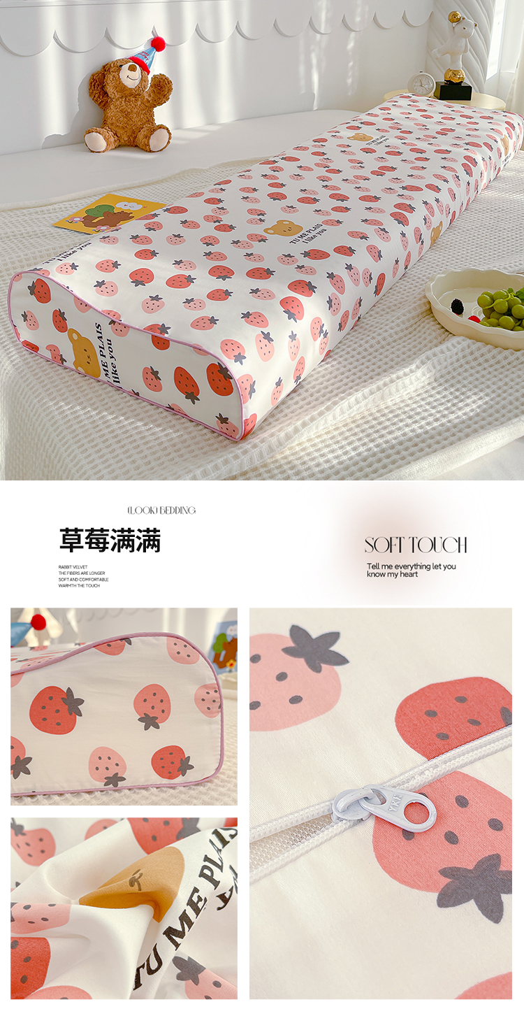 商品名称:良佐生活 2024新款全棉贡缎双人乳胶枕枕套 草莓满满