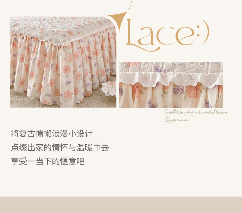 (总)恋尚 2025新款全棉纯棉蕾丝印花单床笠裙床笠裙单件,芙微,花蝶语,花茜,蔓朵,浅栀,夏瑶,向朵,寻芳朵朵,荨花