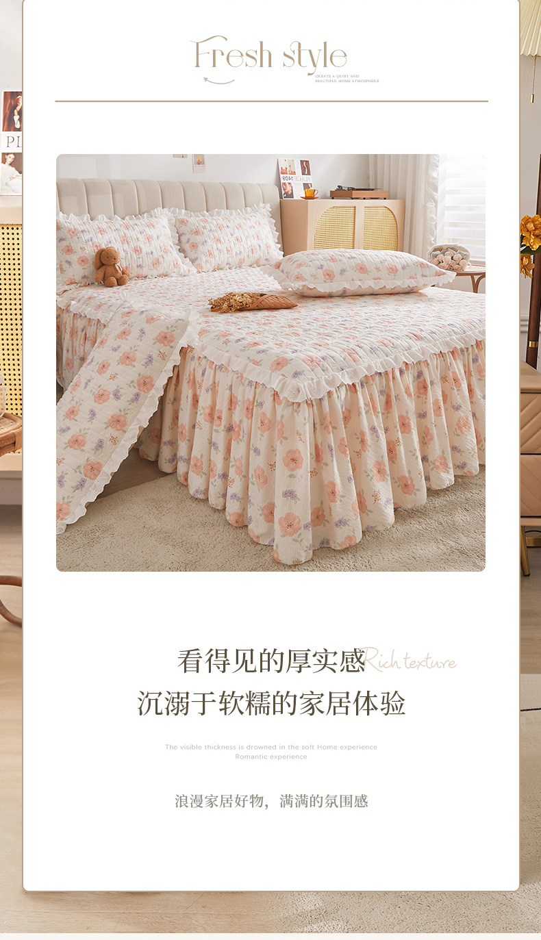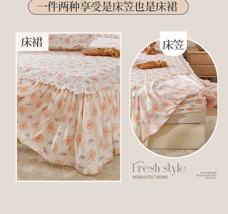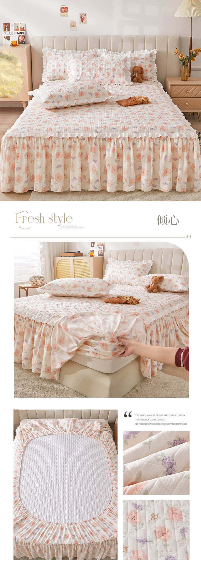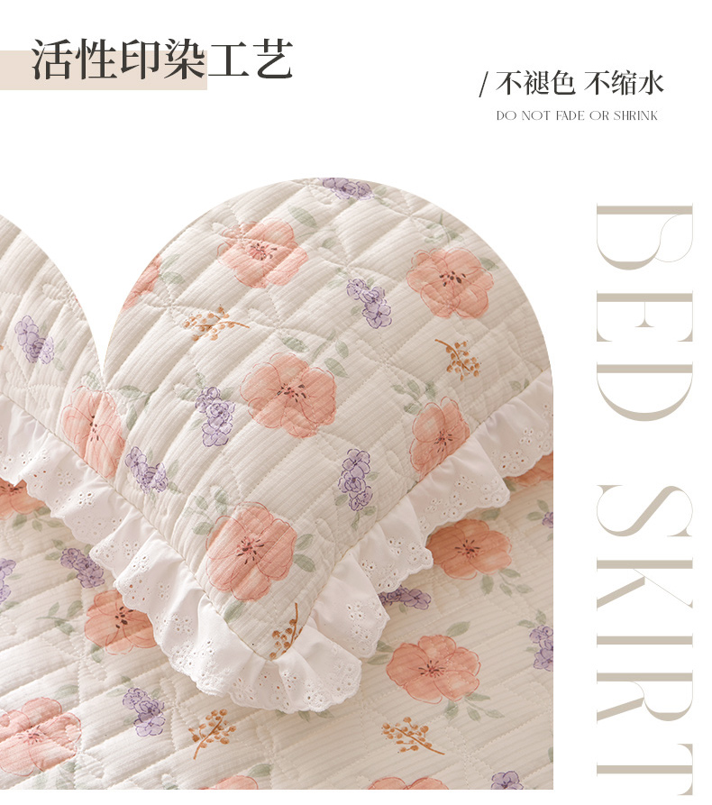 商品名称:恋尚 2024新款小竺棉印花夹棉床笠式单床裙 倾心
