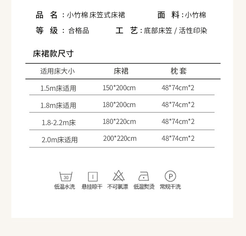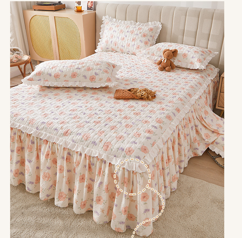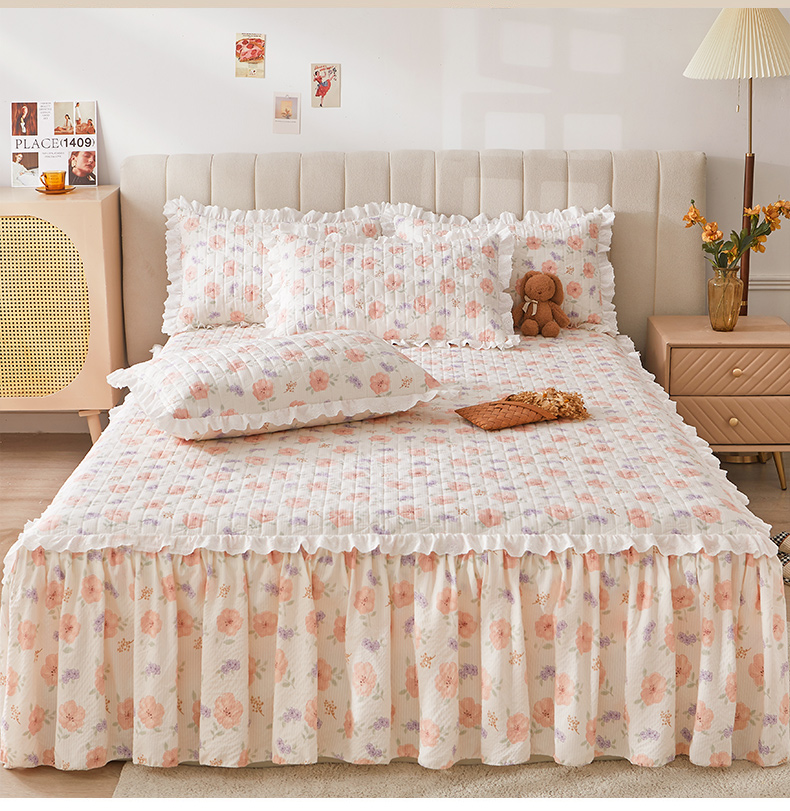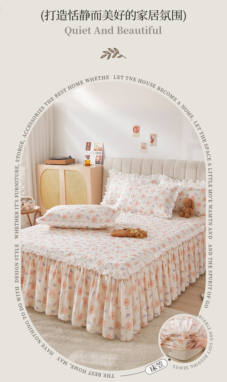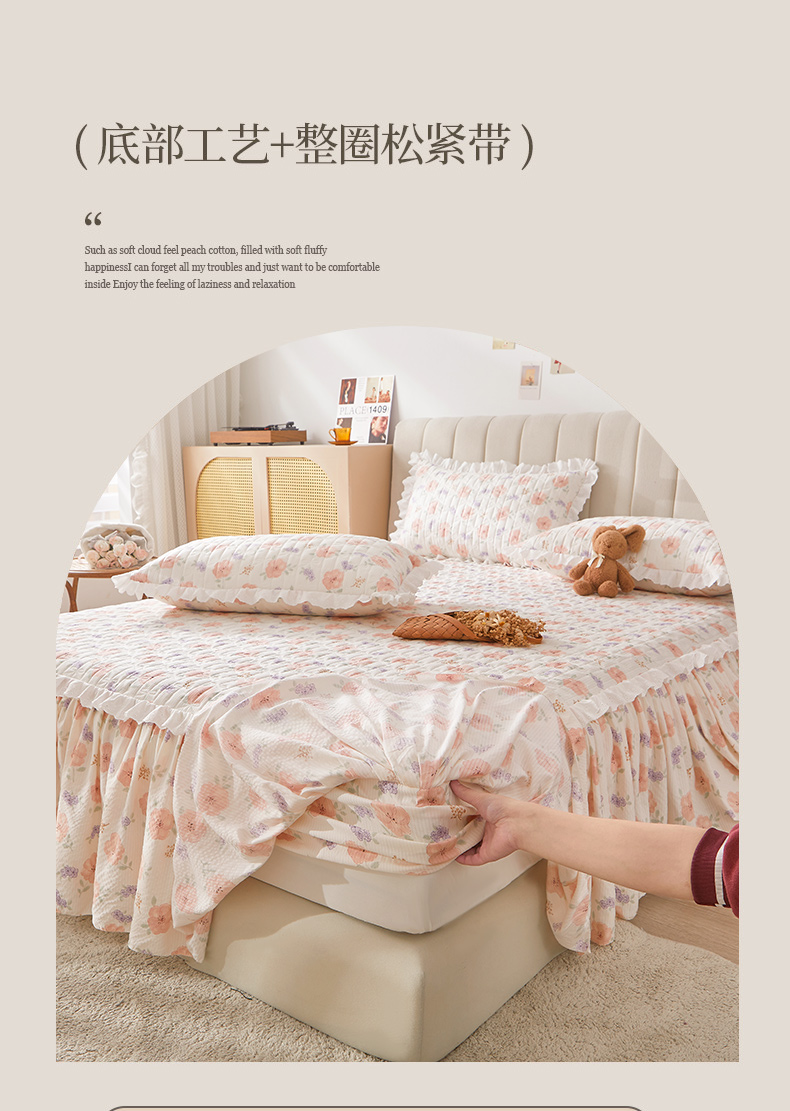 商品名称:恋尚 2024新款小竺棉印花夹棉床笠式单床裙 倾心