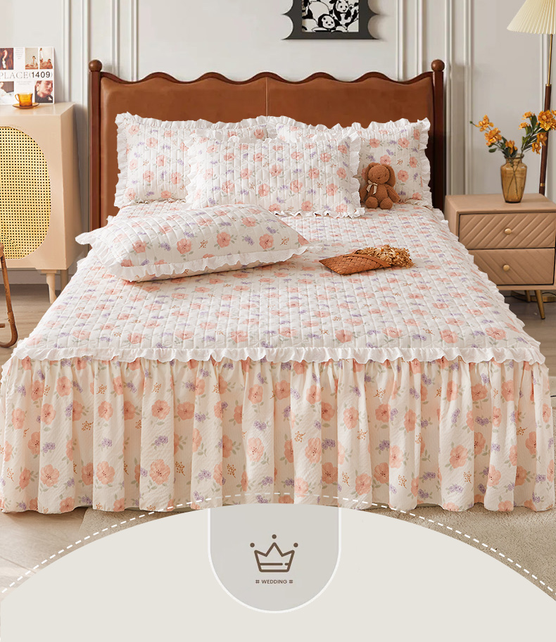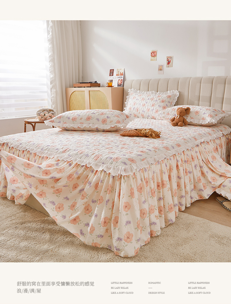 恋尚 2024新款小竺棉印花夹棉床笠式单床裙 倾心