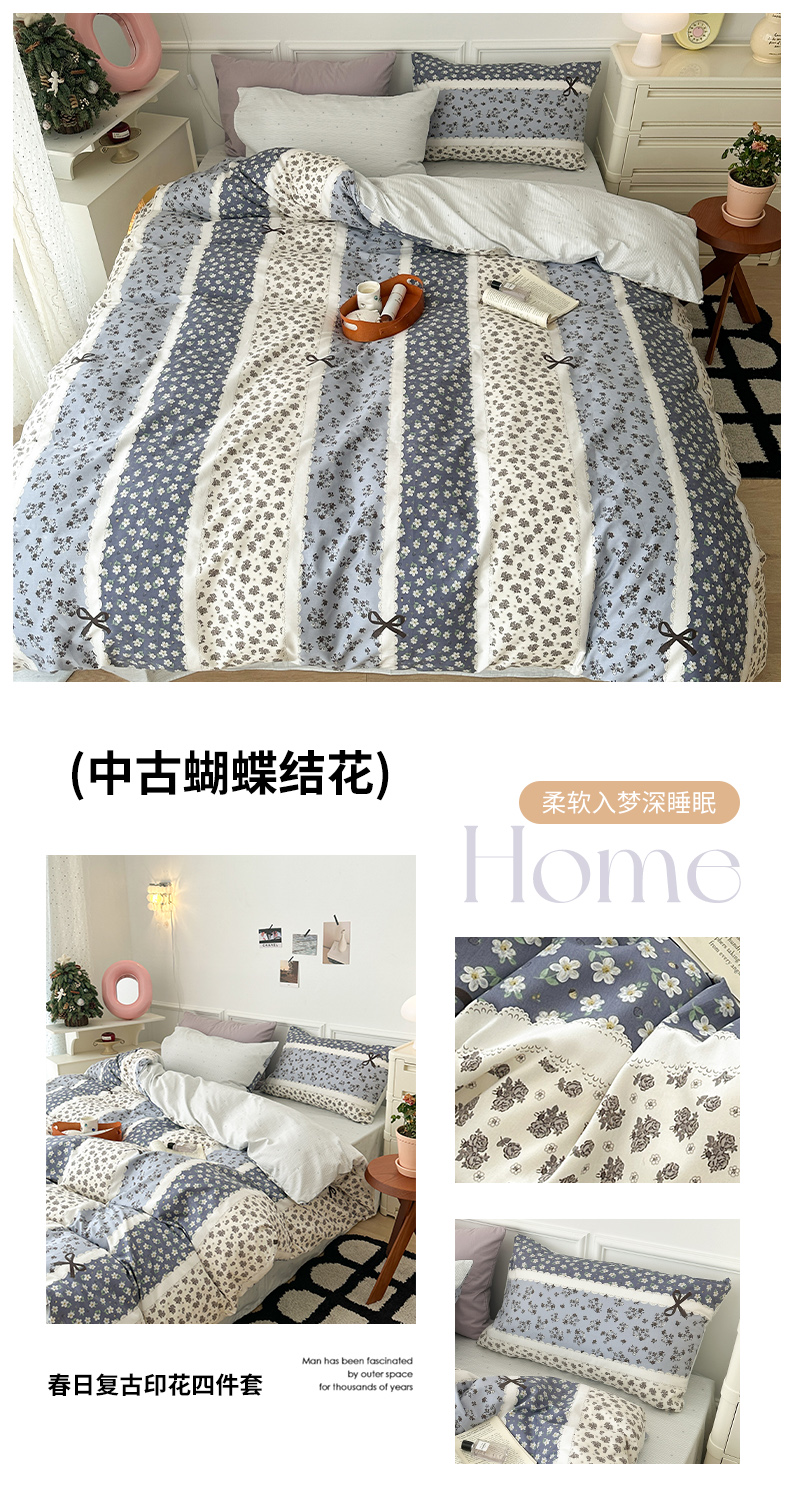 商品名称:昔可家纺 2024新款全棉春日复古印花四件套 中古蝴蝶结花