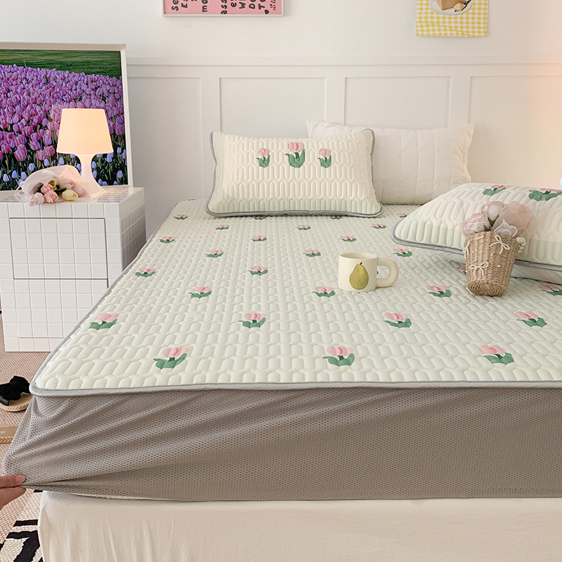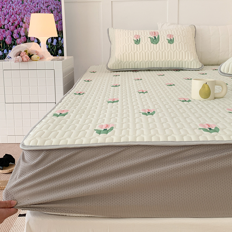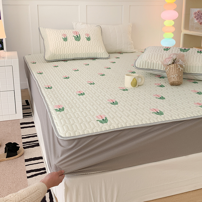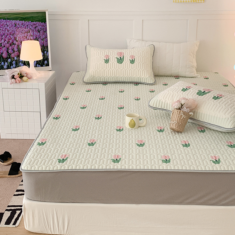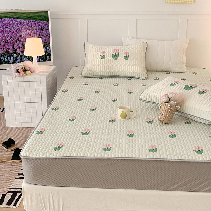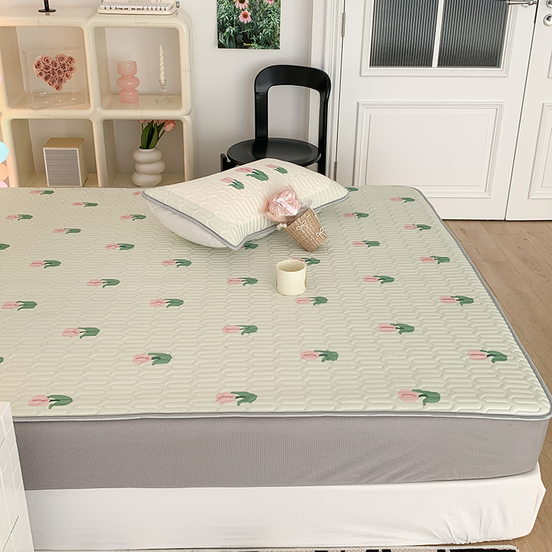 昔可家纺 2024新款床笠款乳胶席 淡绿底郁金香