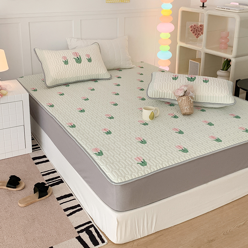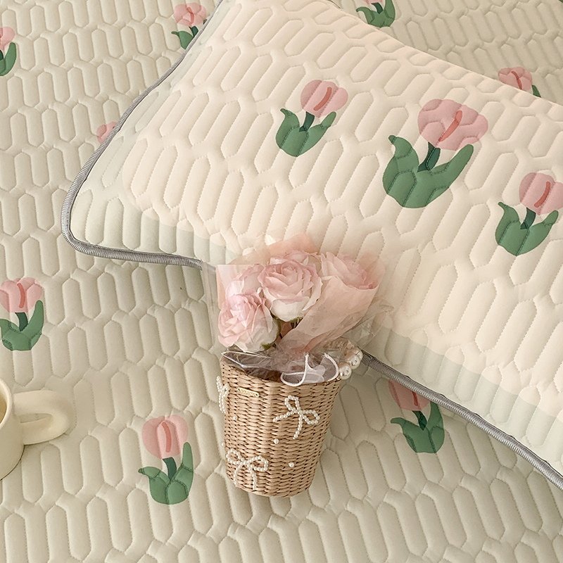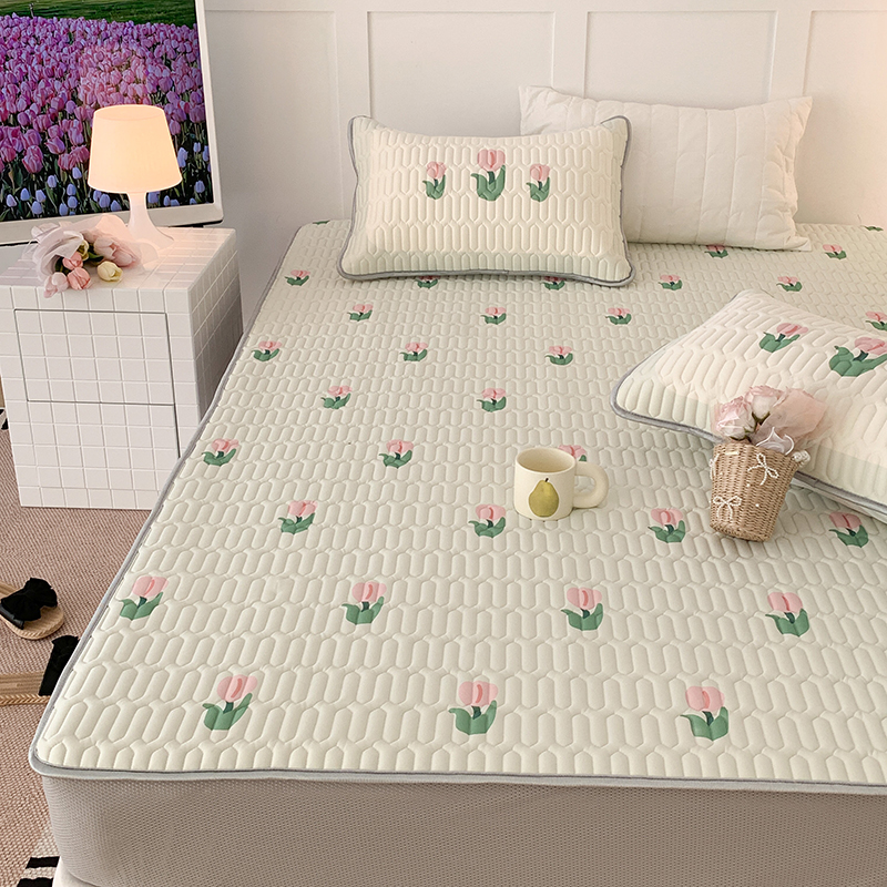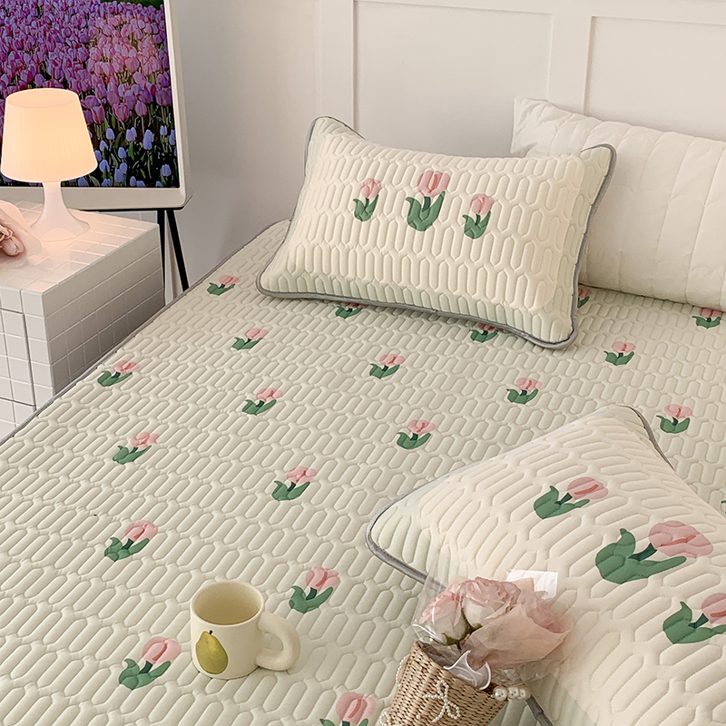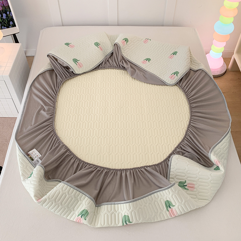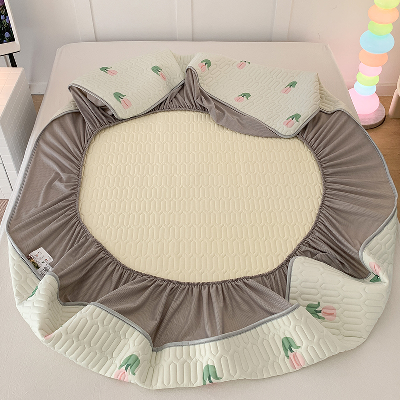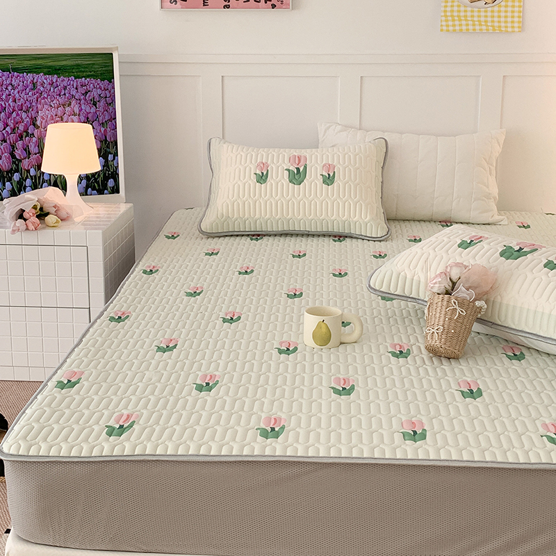 昔可家纺 2024新款床笠款乳胶席 淡绿底郁金香