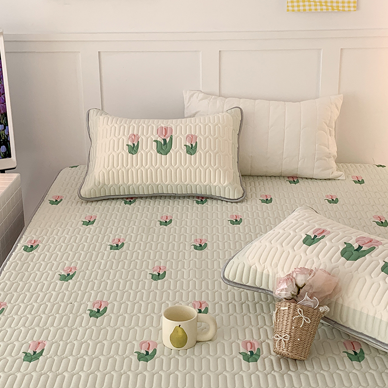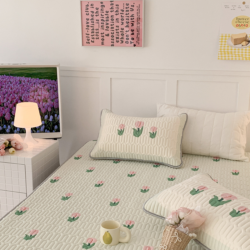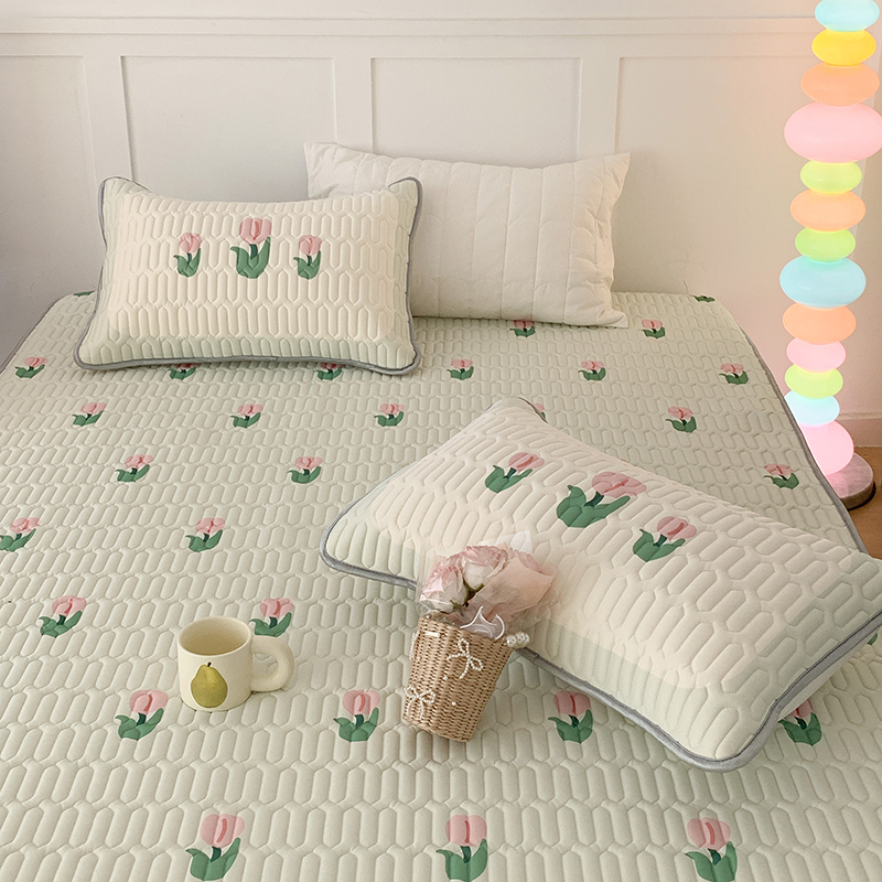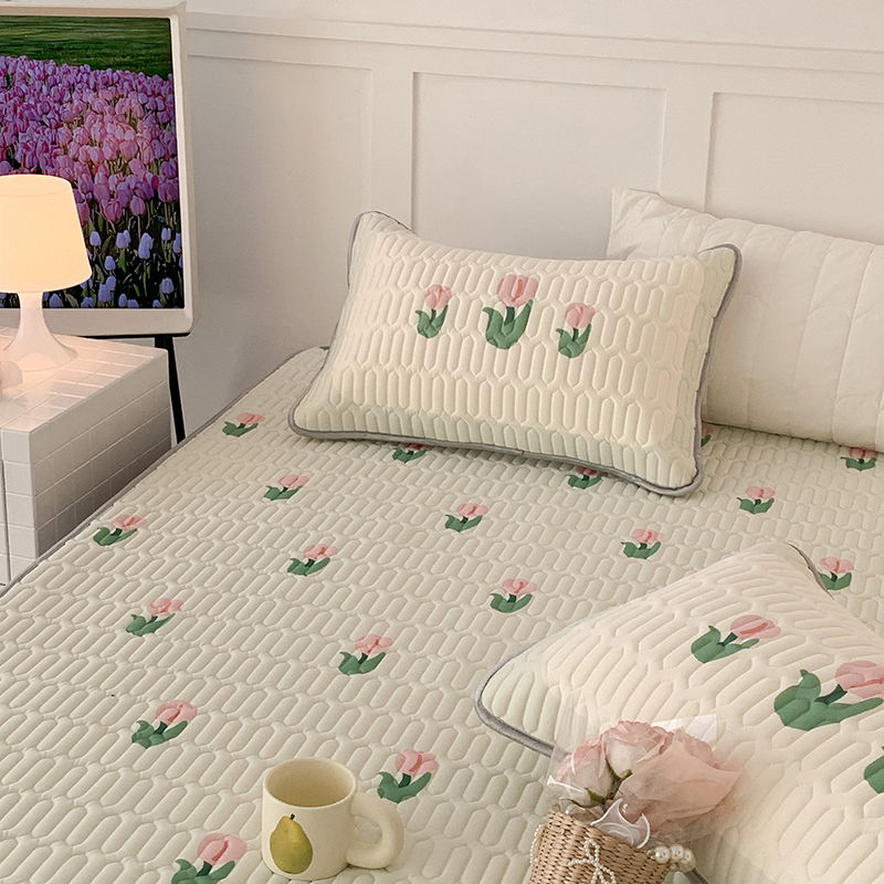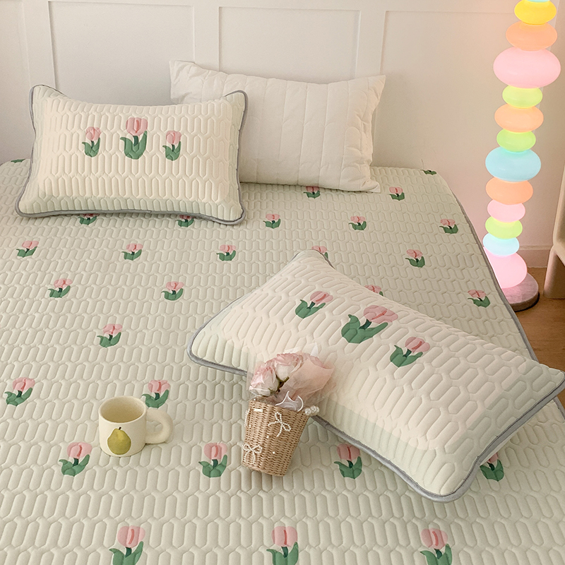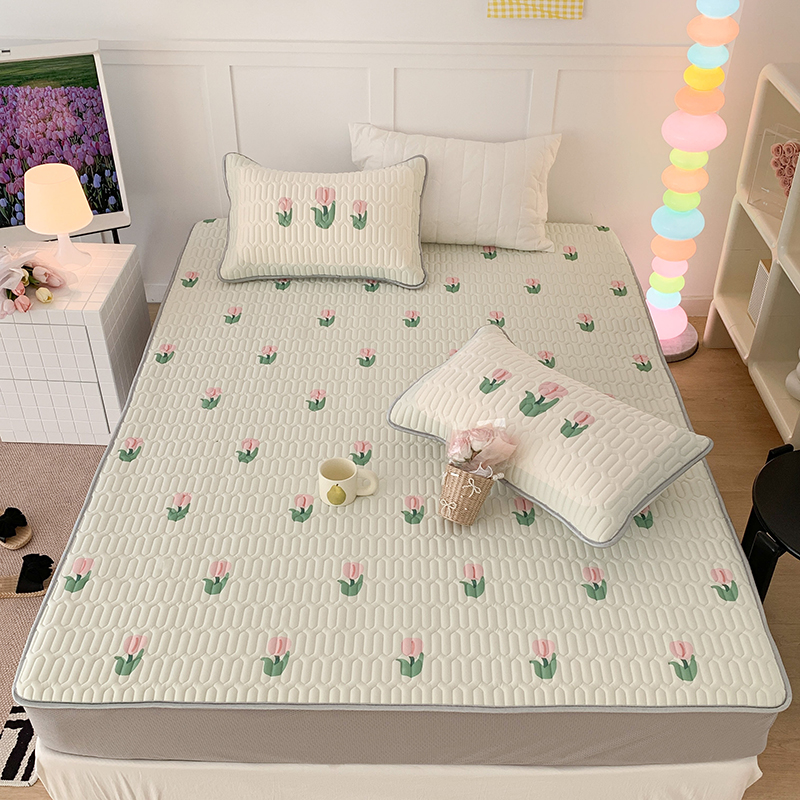 商品名称:昔可家纺 2024新款床笠款乳胶席 淡绿底郁金香