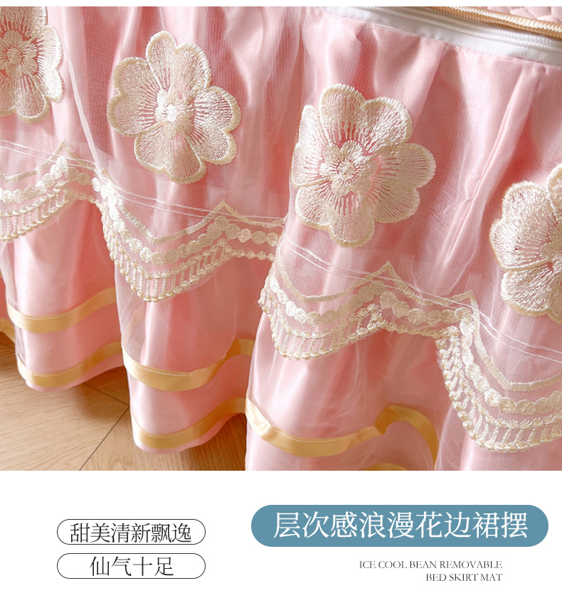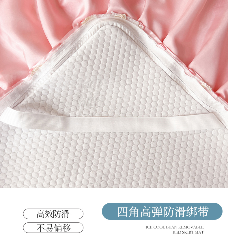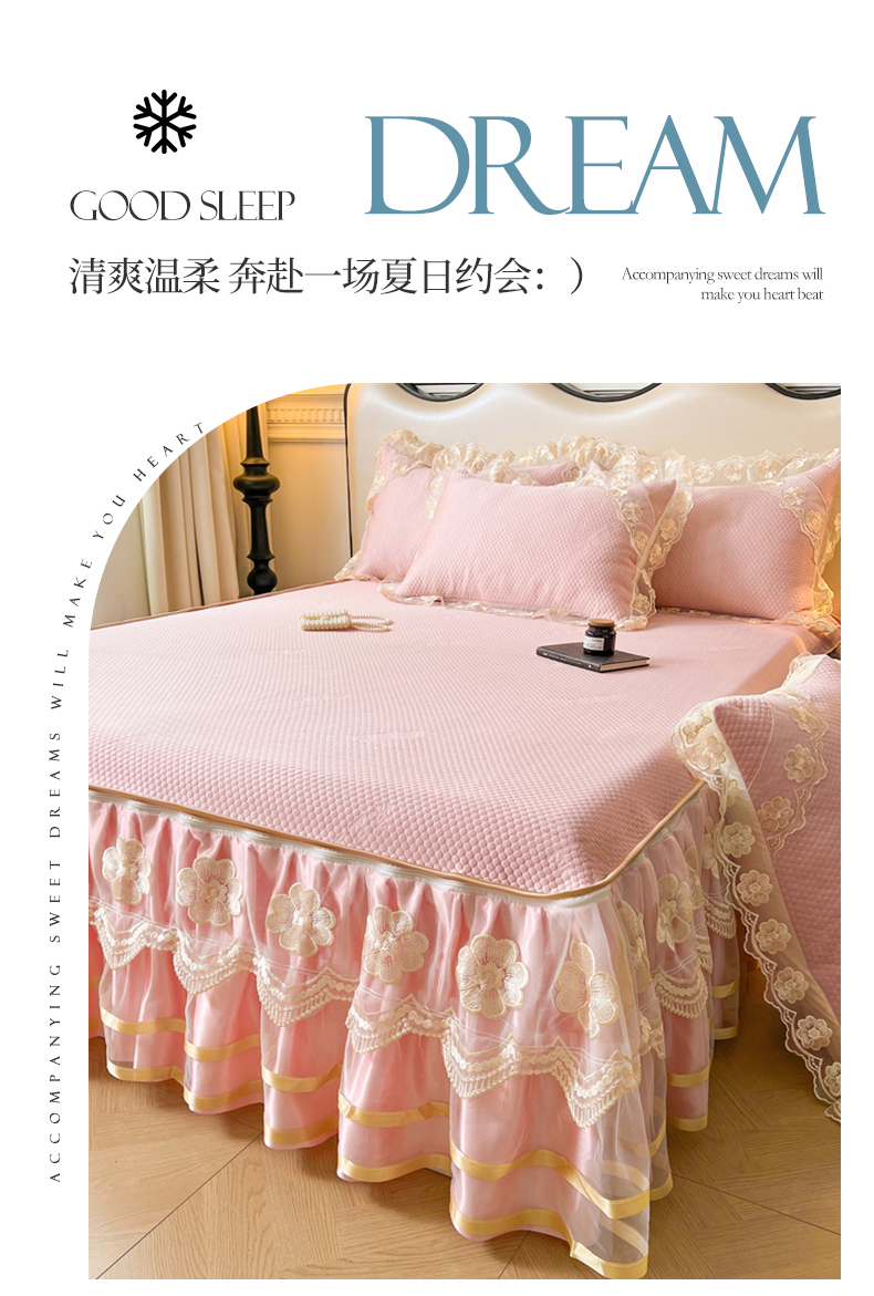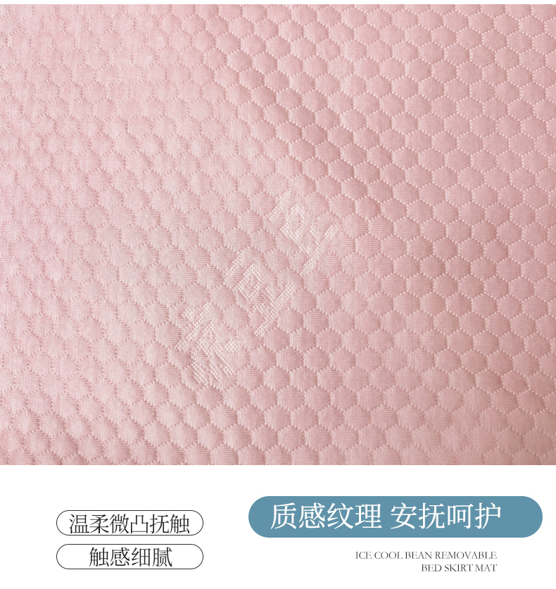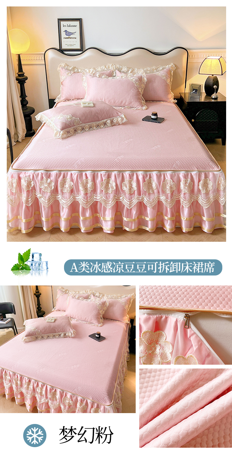 商品名称:虹星家纺 2024新款A类冰感凉豆豆可拆卸床裙席三件套 梦幻粉