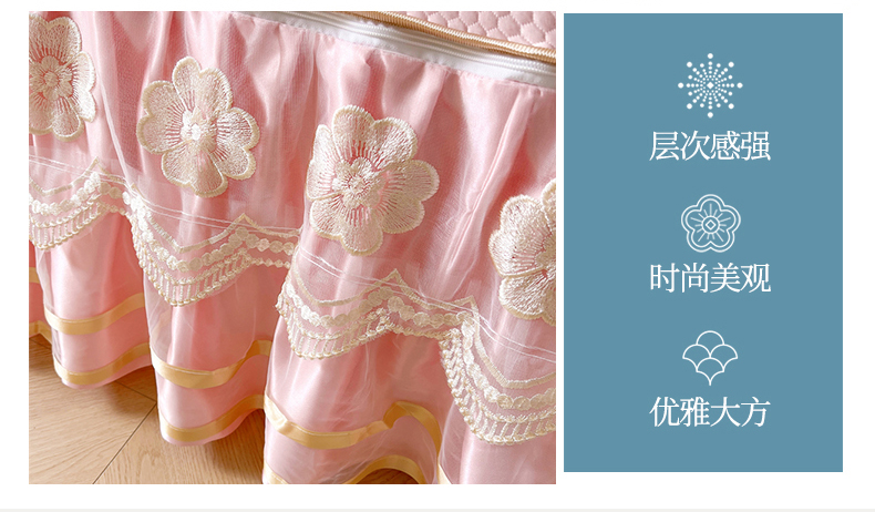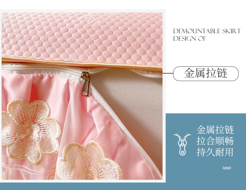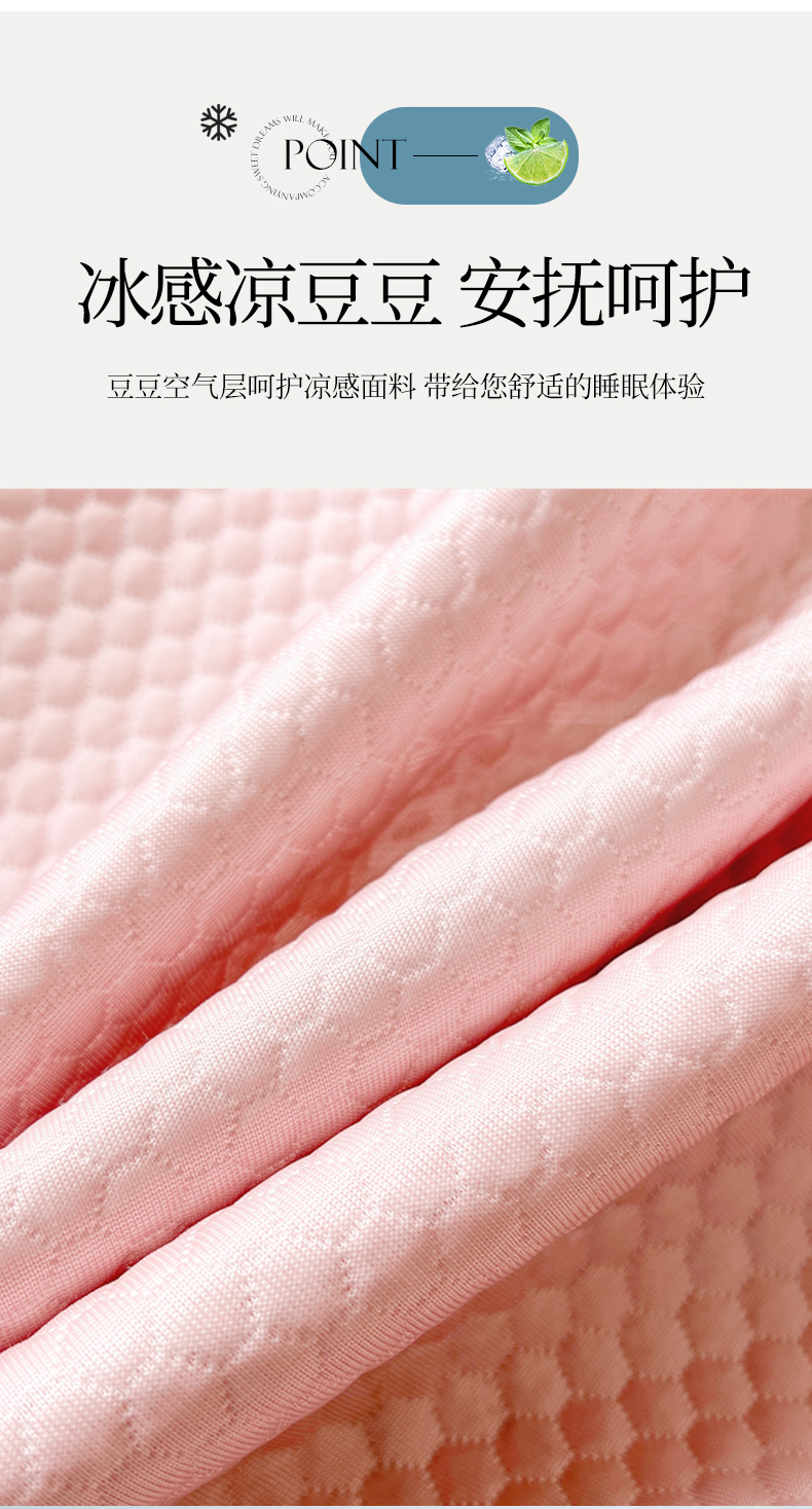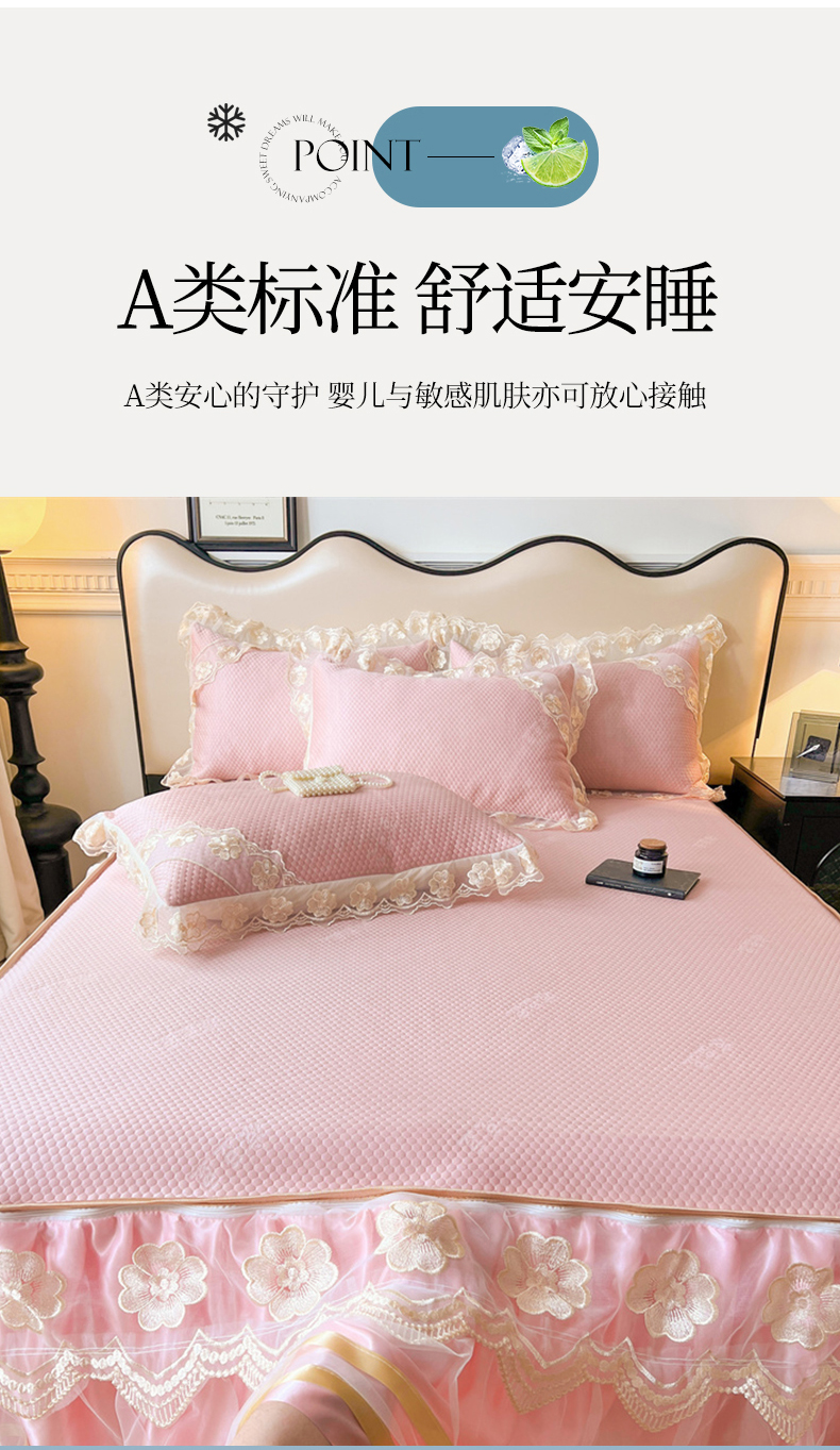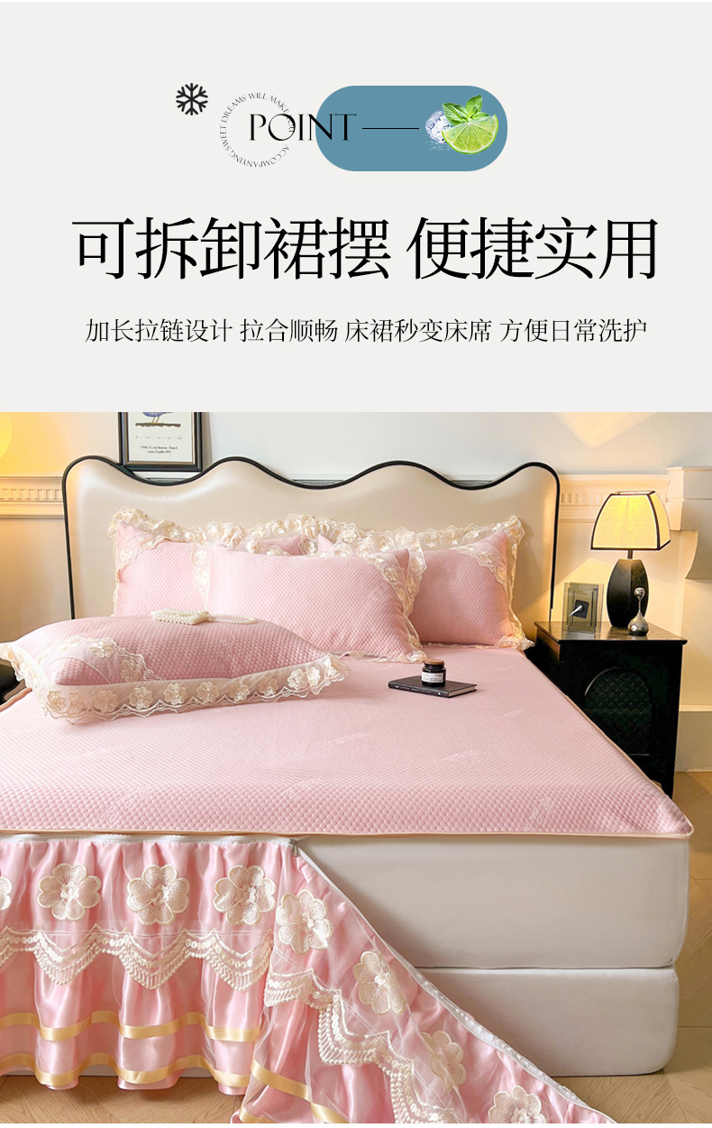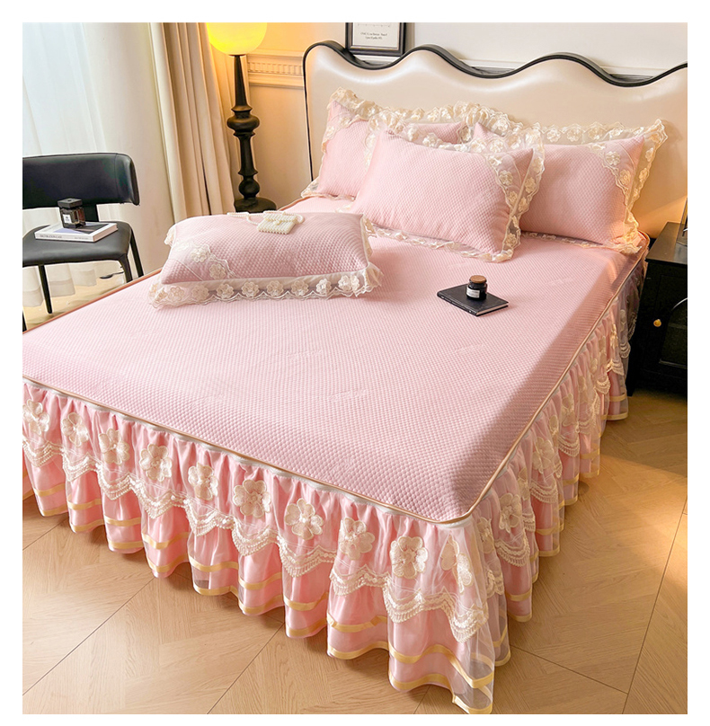 商品名称:虹星家纺 2024新款A类冰感凉豆豆可拆卸床裙席三件套 梦幻粉