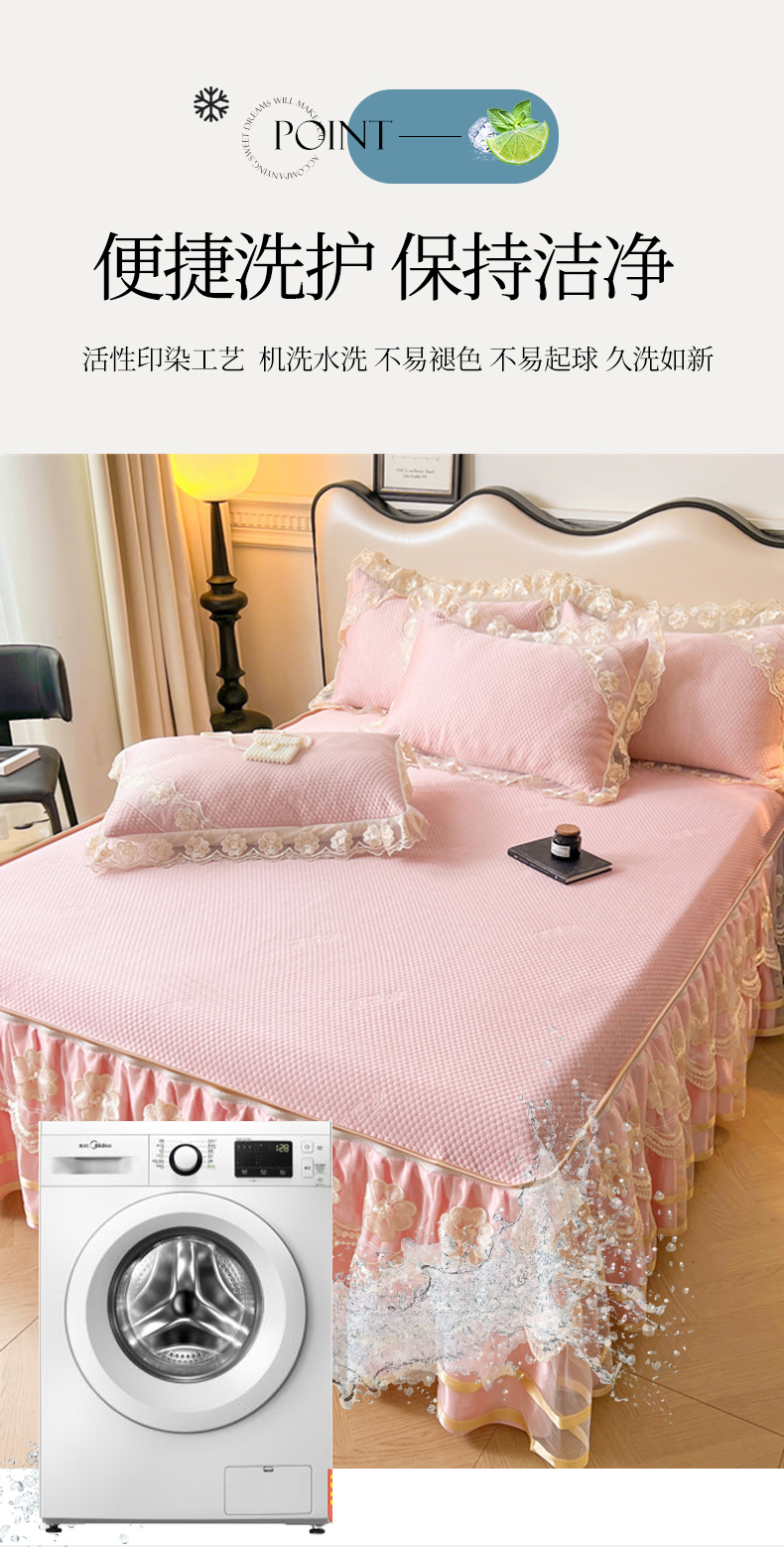 (总)虹星家纺 2025新款A类冰感凉豆豆床裙席三件套-素夏,素夏-抹茶绿,素夏-蜜桃粉,素夏-青果绿,素夏-天空蓝,素夏-月光灰