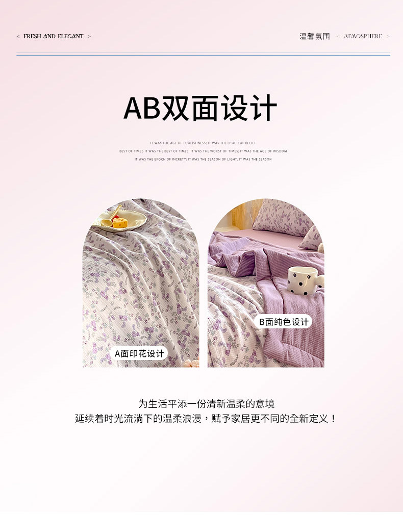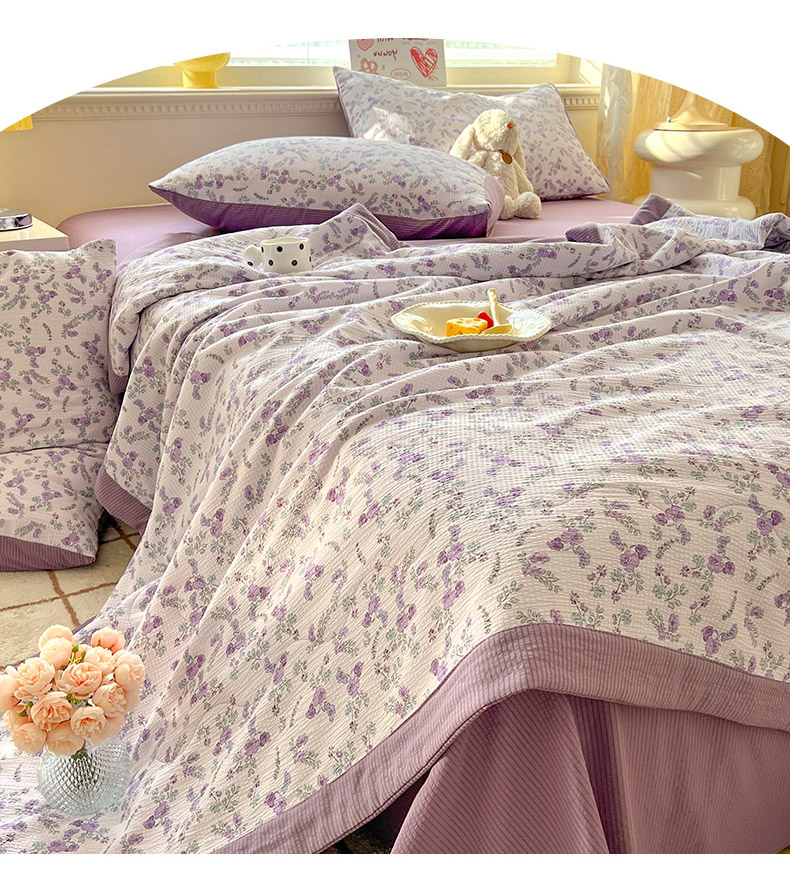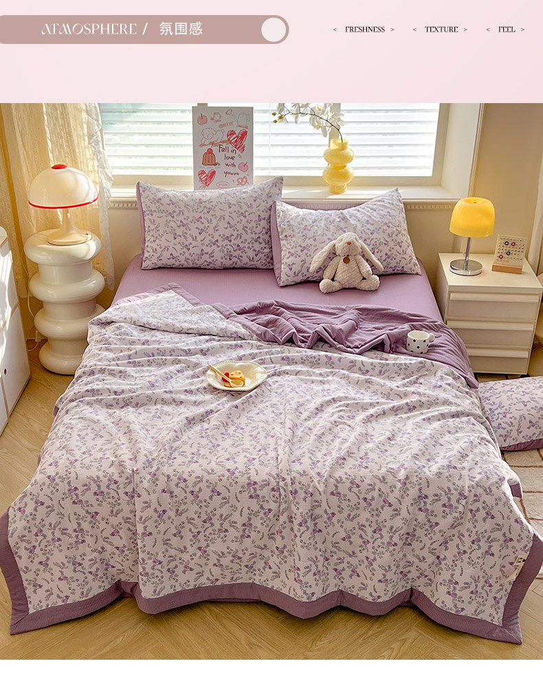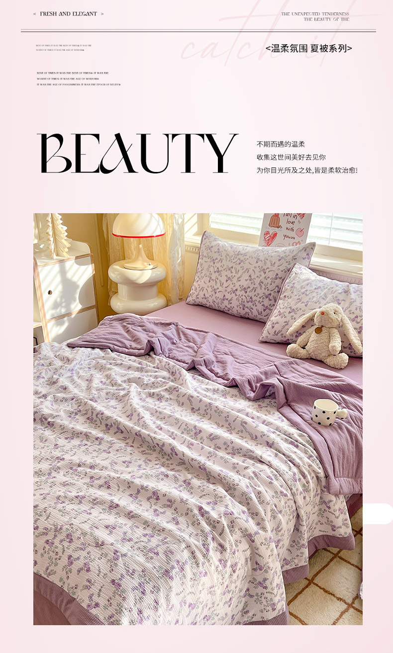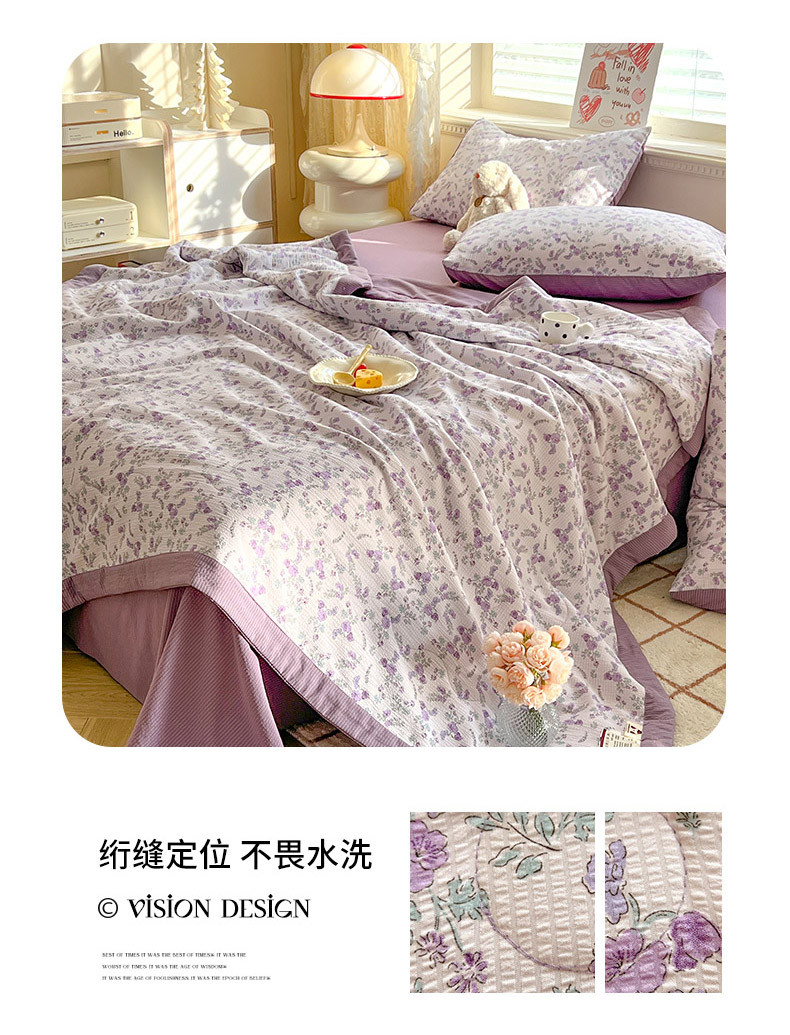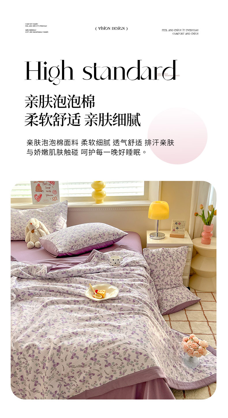 妖妖家纺 2024新款有氧水洗泡泡棉印花四套泡芙棉夏被四件套 暮山紫茎
