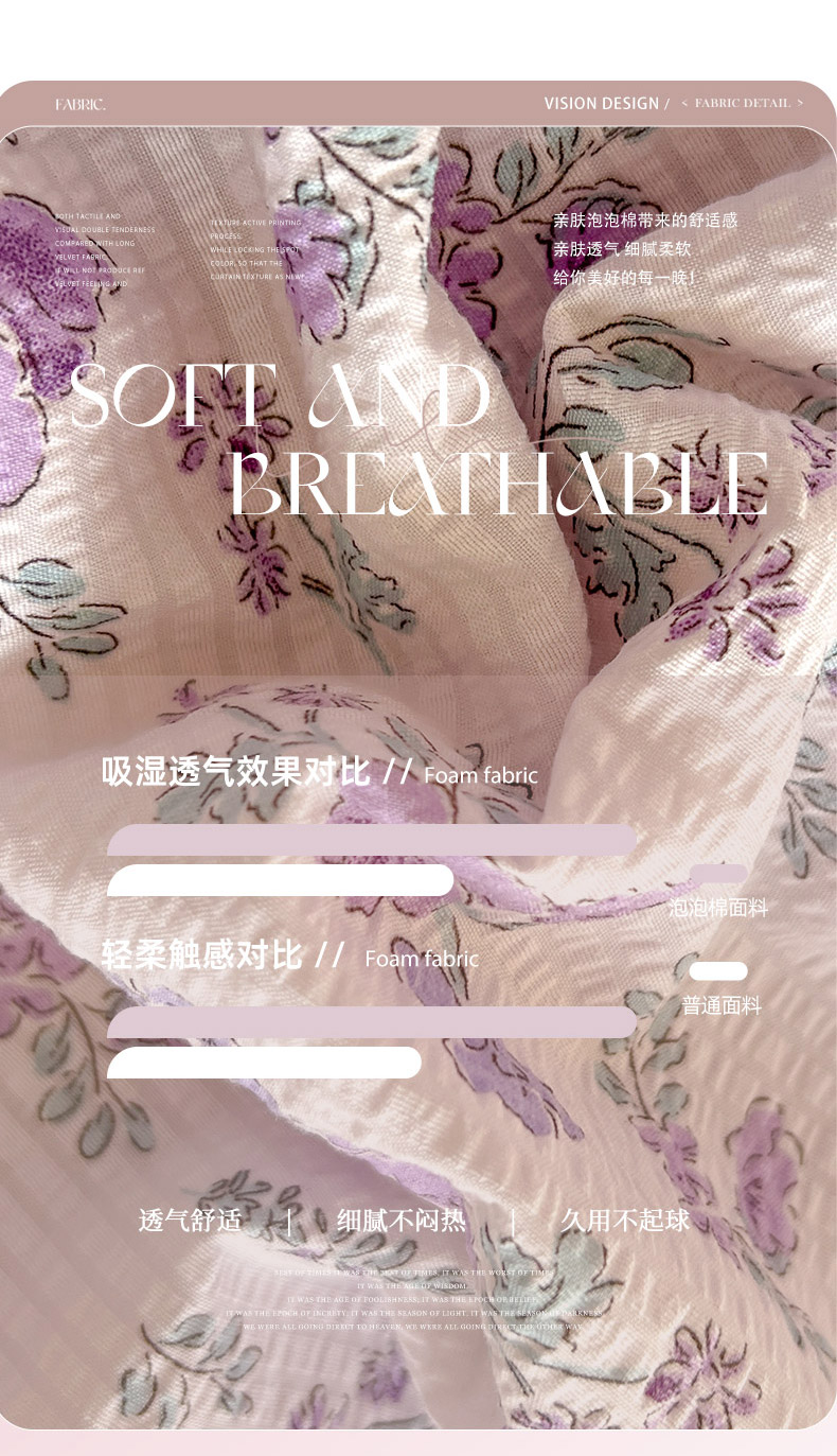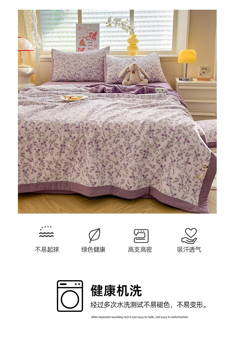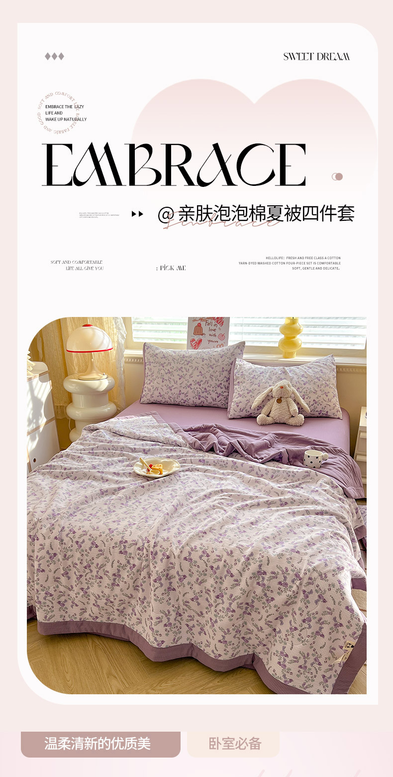 商品名称:妖妖家纺 2024新款有氧水洗泡泡棉印花四套泡芙棉夏被四件套 暮山紫茎