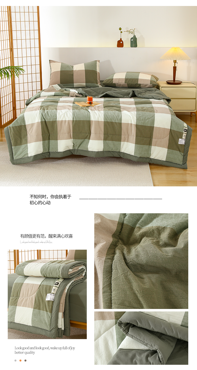 • 91家纺网 家纺一手货源 找家纺 花言狐语 2025新款A类全棉水洗棉夏被四件套 绿大格-单夏被