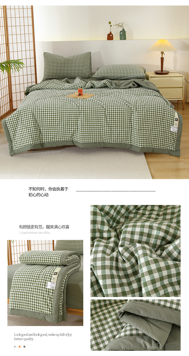 • 91家纺网 家纺一手货源 找家纺 花言狐语 2025新款A类全棉水洗棉夏被四件套 绿小格-夏被四件套