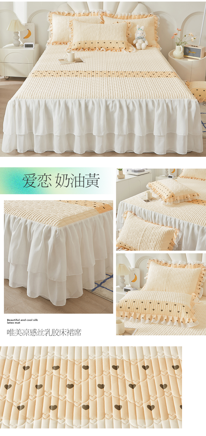 宜凡家纺 2024新款0.6乳胶床裙凉席 爱恋 奶油黄