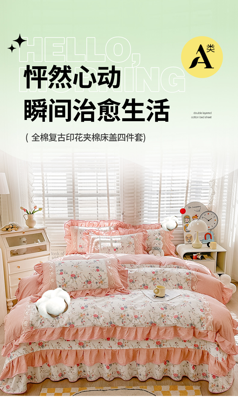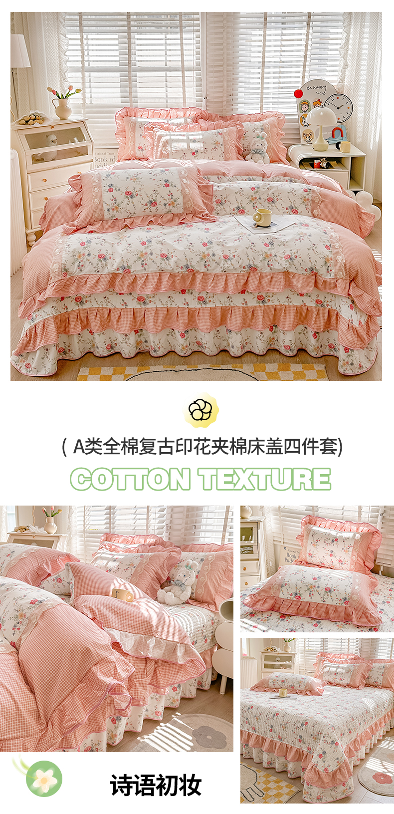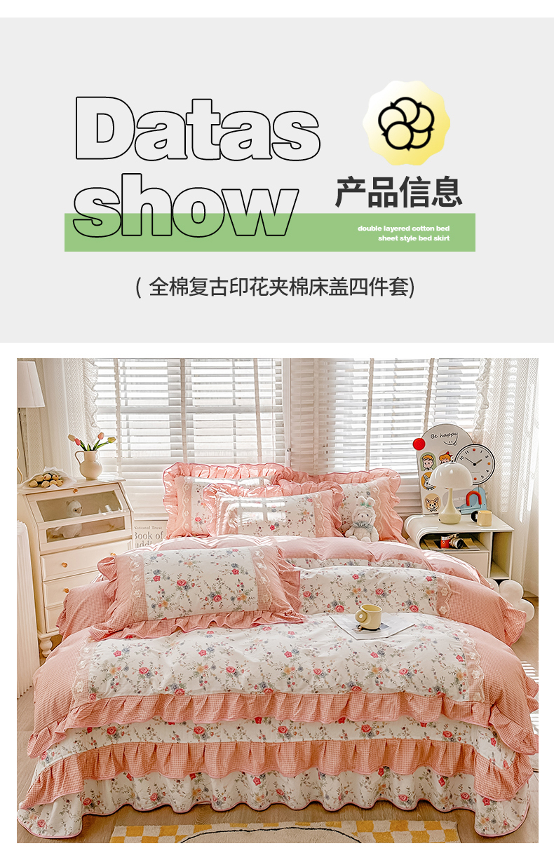 当前位置: 91家纺网 > 商品网购 > 床品套件 > 四件套 > 全棉普通四件套 > 宜凡家纺 2024新款全棉复古印花床盖四件套 诗语初妆