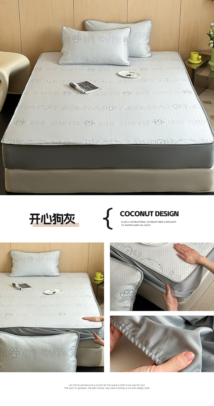 顾里家纺 新款冰豆豆立体提花软席床笠款 开心狗灰