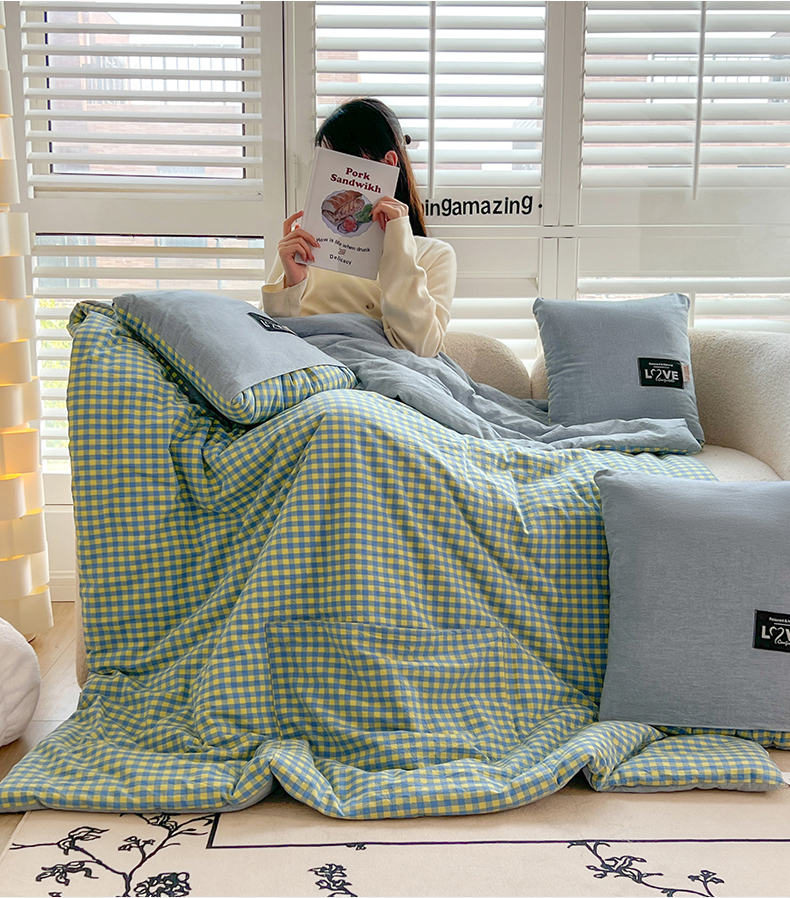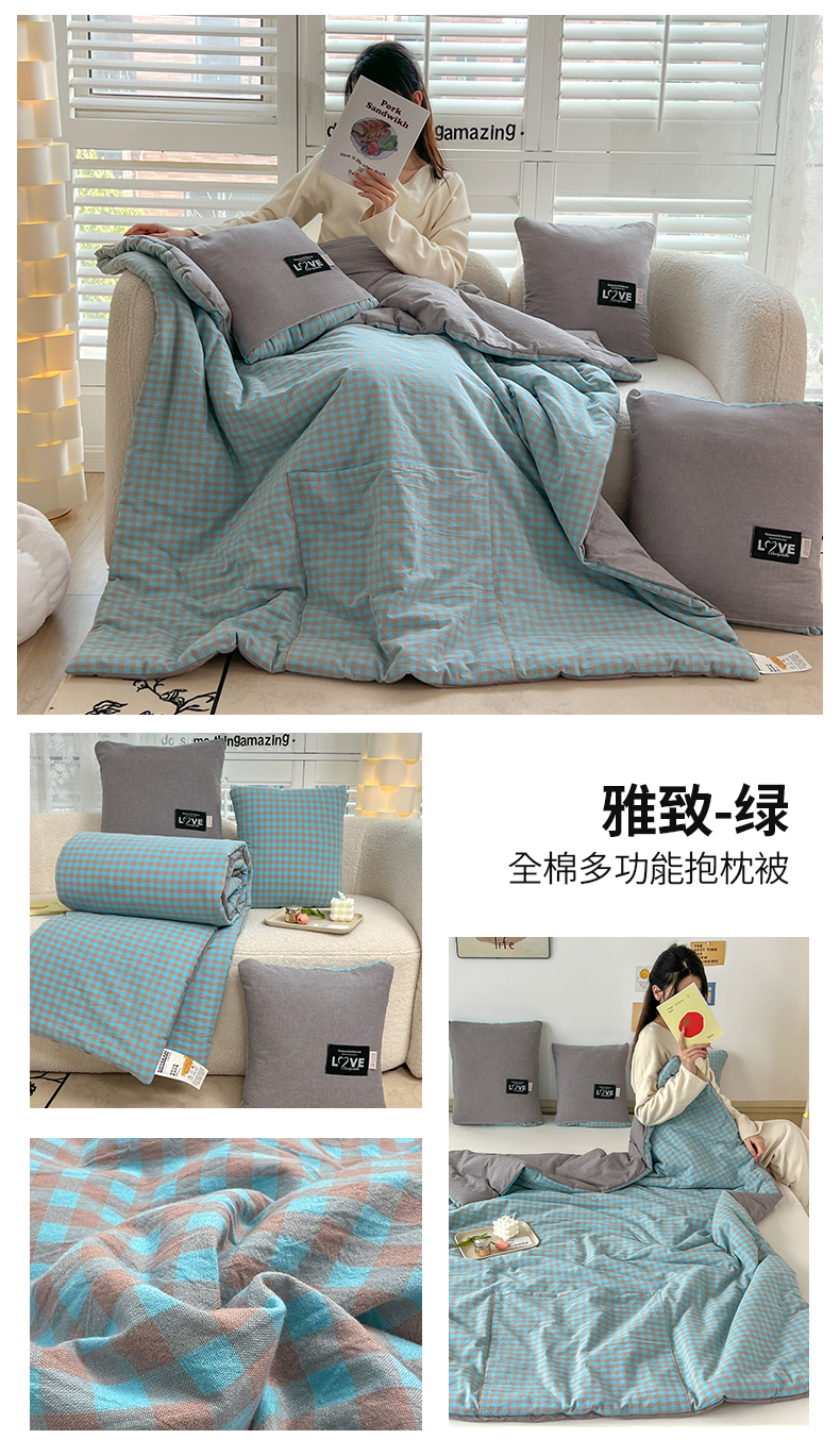 当前位置: 91家纺网 > 商品网购 > 居家日用 > 靠垫/抱枕 > 翰轩家居 2024新款全棉色织水洗棉抱枕被 雅致-绿
