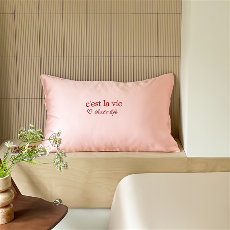 商品名称:圆岛家纺 2024新款60支奥地利兰精LF天丝纯色系列-单品天丝枕套 爱心粉