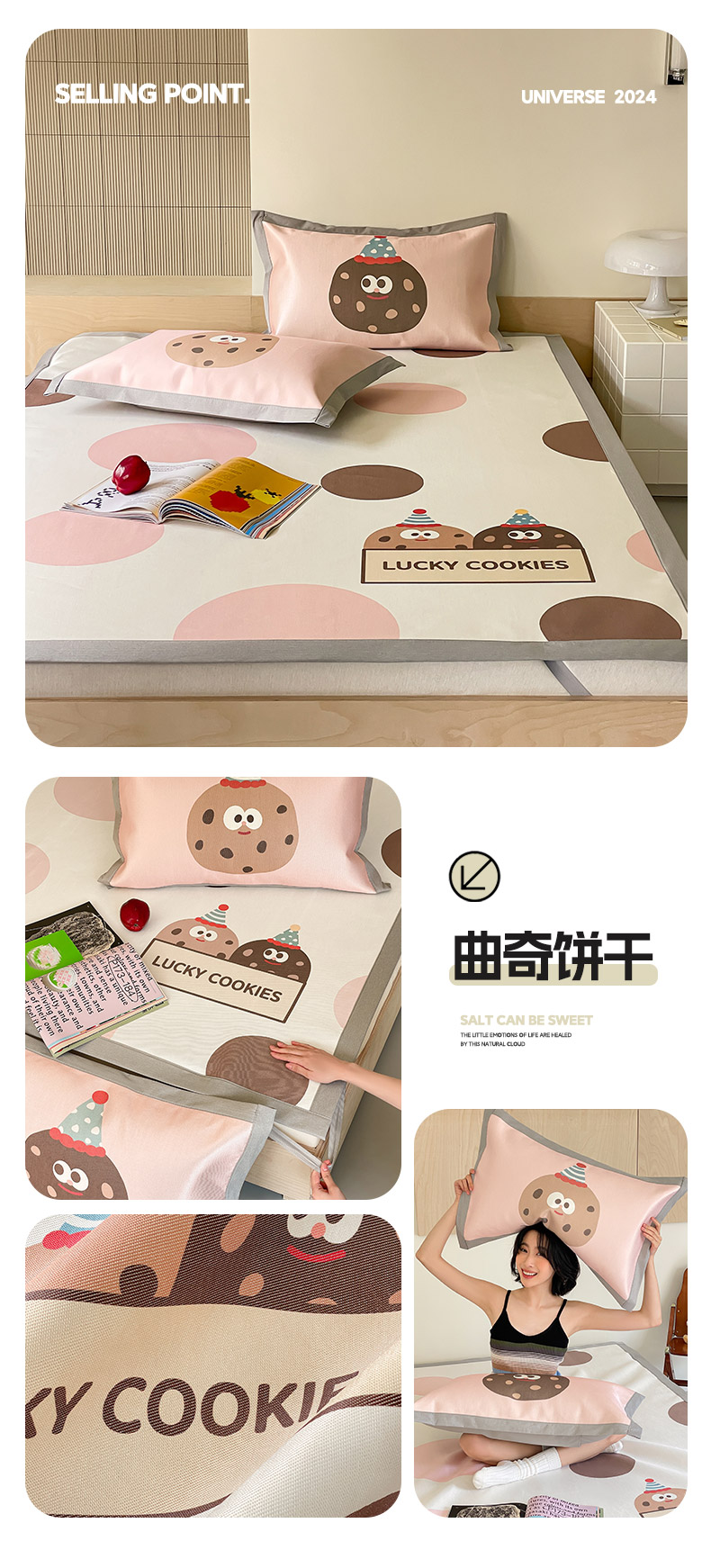 圆岛家纺 2024新款900D卡通冰丝养生席 曲奇饼干