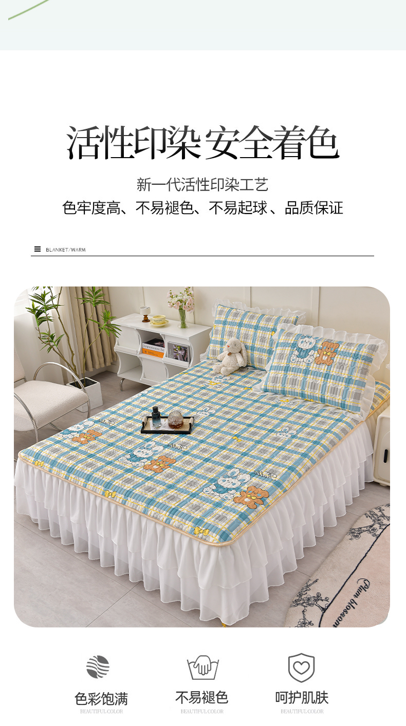 (总)民新家纺 2025新款牛奶绒夹棉床裙三件套,浪漫时光-浅紫,浪漫时光-灰,浪漫时光-大红,浪漫时光-浅粉,浪漫时光-浅蓝,浪漫时光-浅绿,浪漫时光-浅米黄