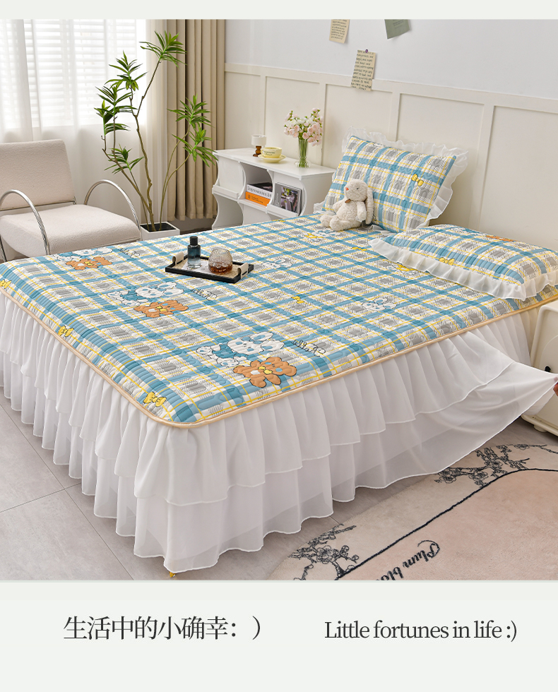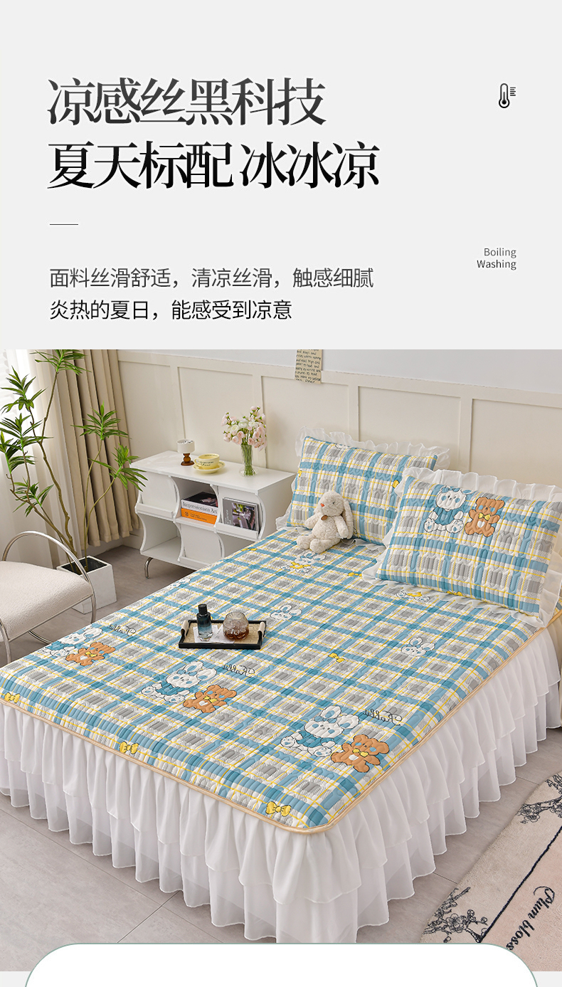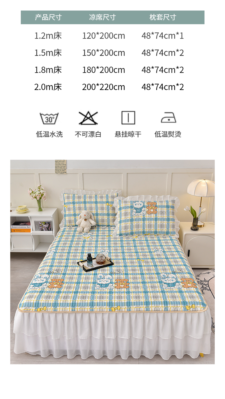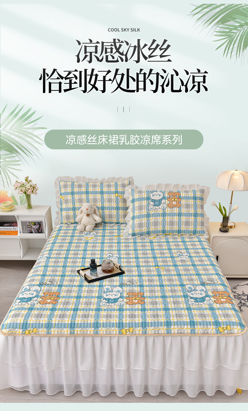 商品名称:民新家纺 2024新款凉感丝乳胶床裙凉席 格调兔-蓝