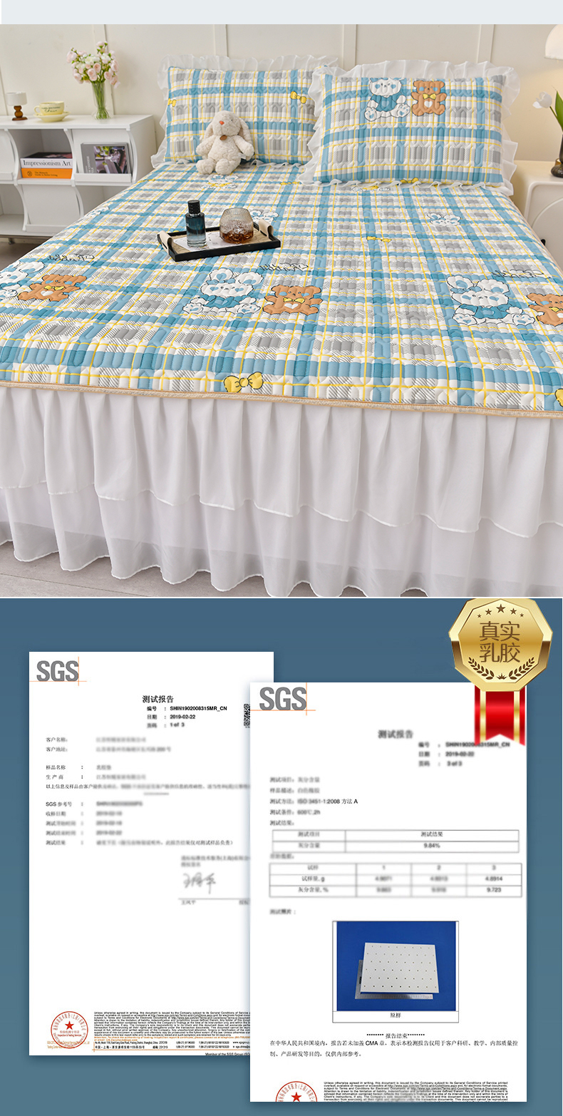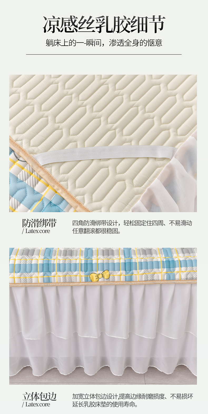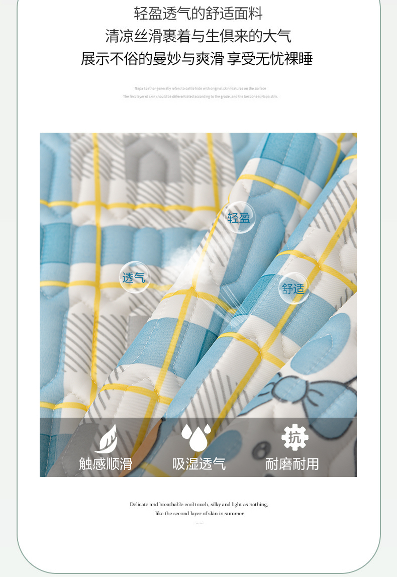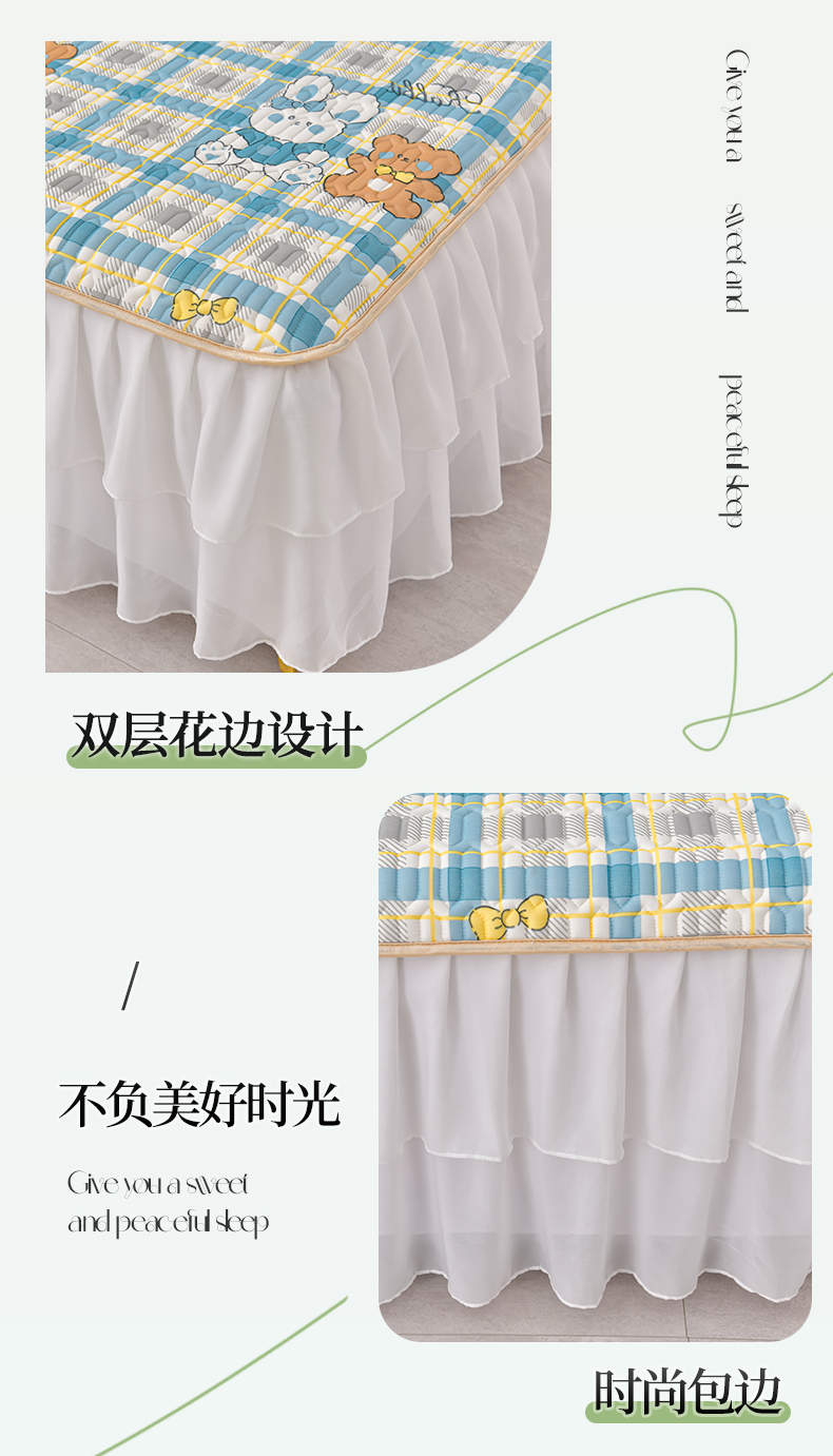 商品名称:民新家纺 2024新款凉感丝乳胶床裙凉席 格调兔-蓝