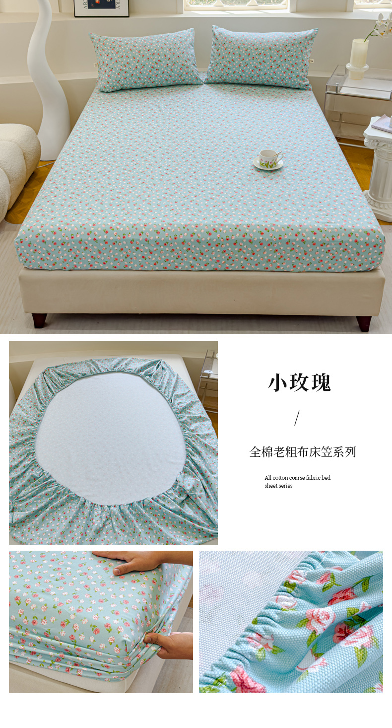 • 91家纺网 家纺一手货源 找家纺 金丝鸟家纺 2024新款成人款A类老粗布床笠 小玫瑰