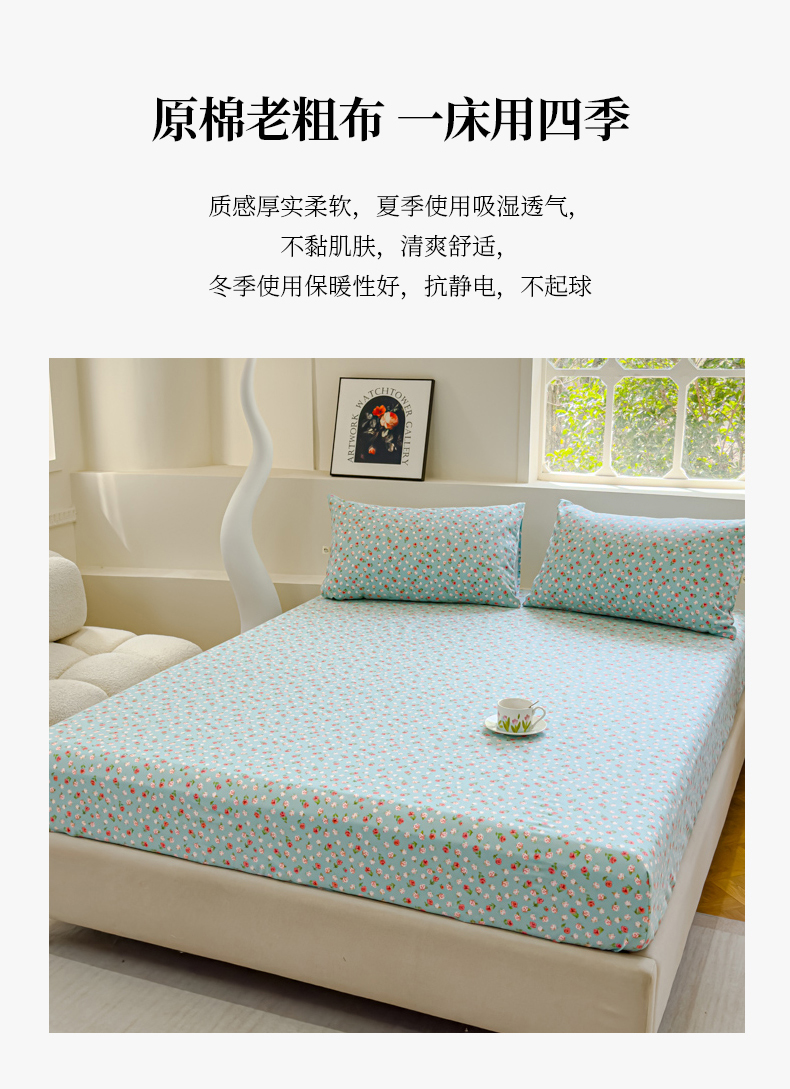 金丝鸟家纺 2024新款成人款A类老粗布床笠 小玫瑰