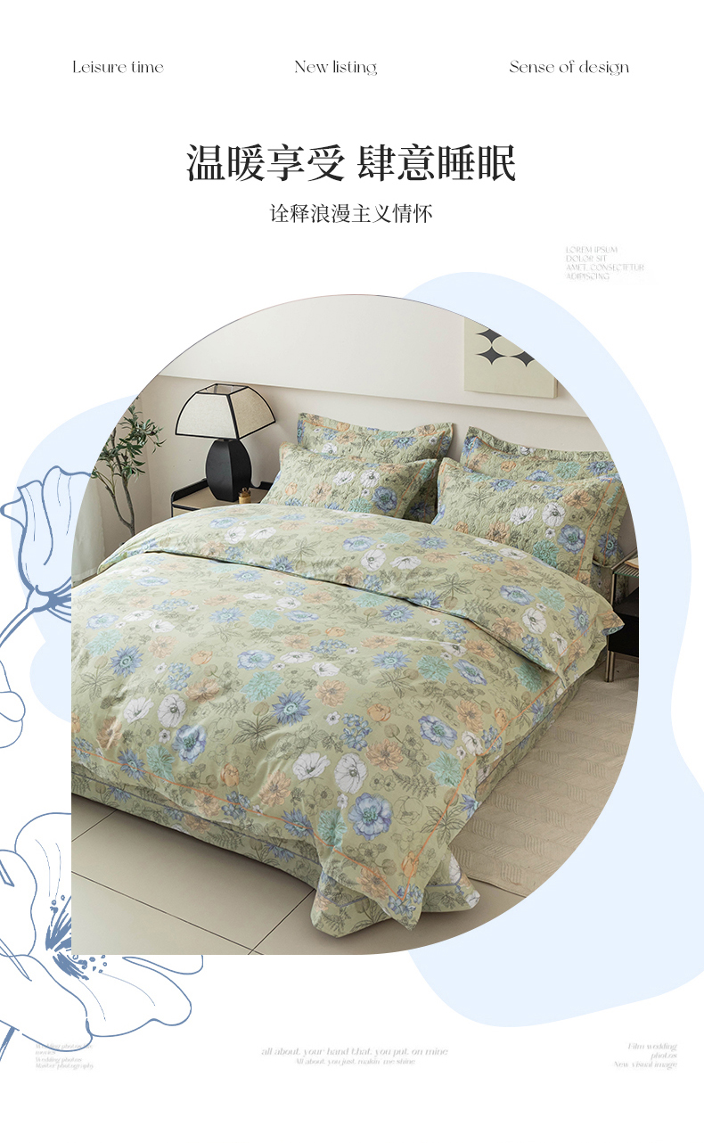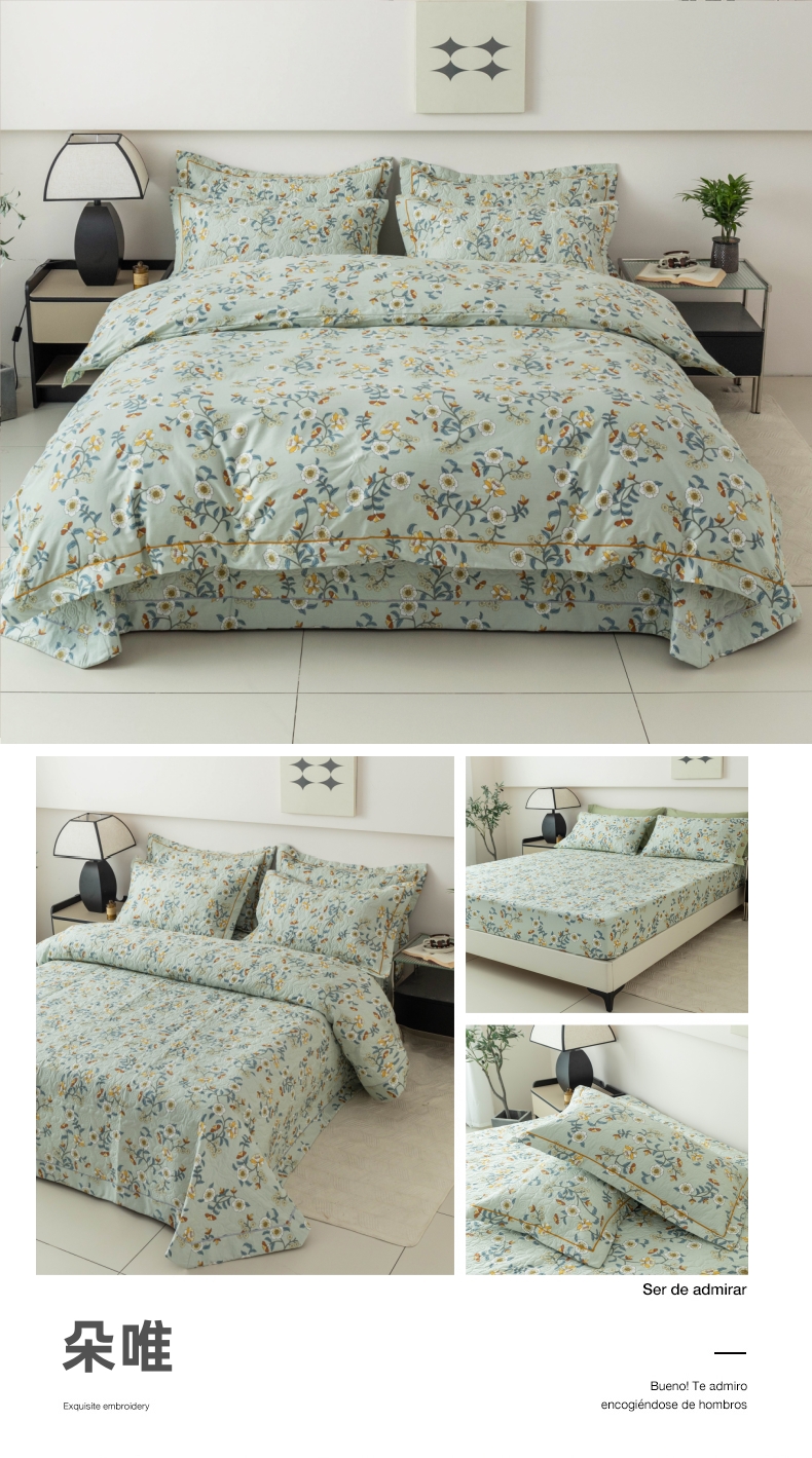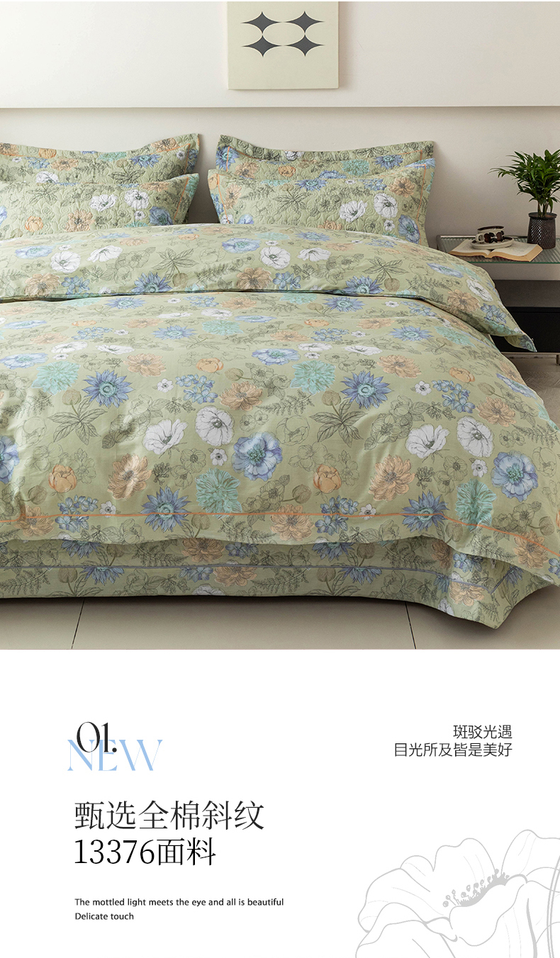 (总)优乐家纺 2025新款全棉斜纹13376单层被套夹棉床盖款四件套,安琪-黄,安琪-绿,波西米亚,博尔-咖,春意盎然,朵唯,花颜悦色,迷雾,慕斯,南薇,南薇-兰,普卡拉-红,普卡拉-兰,清婉,蔚然花,早春