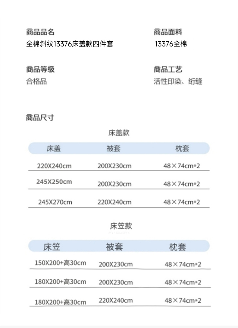商品名称:(总)优乐家纺 2025新款全棉斜纹13376单层被套夹棉床盖款四件套