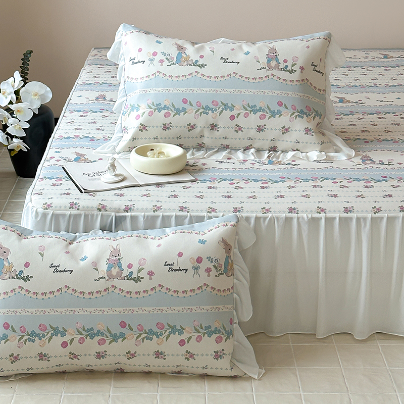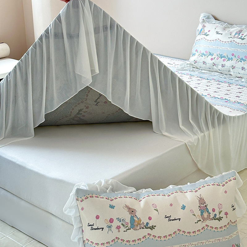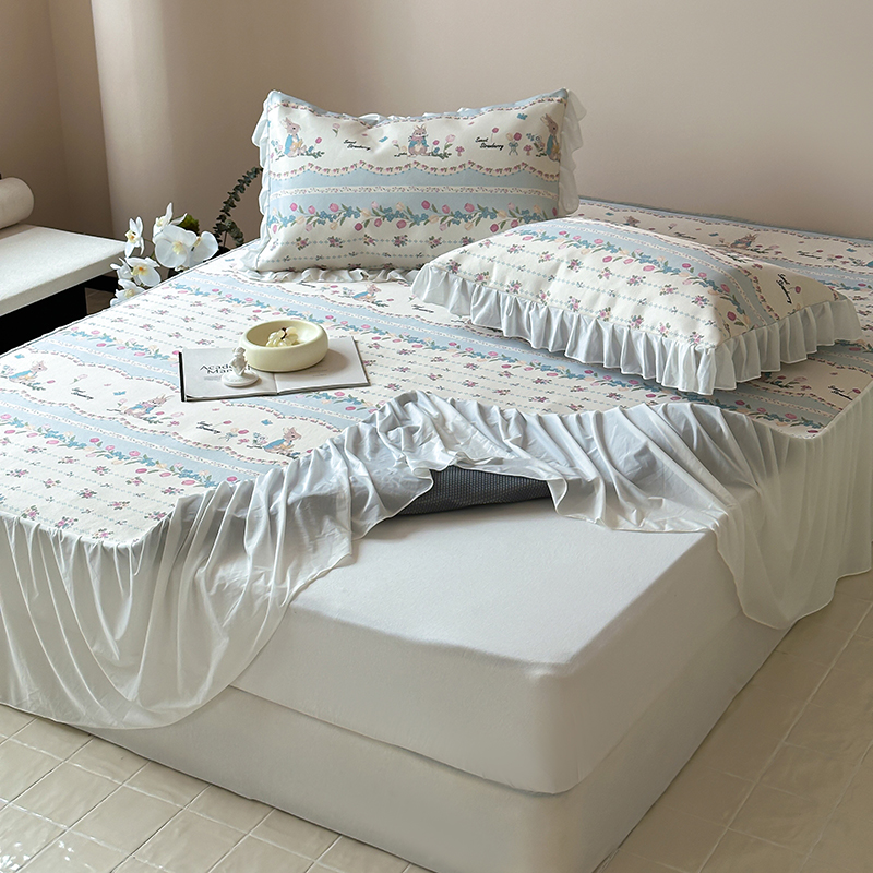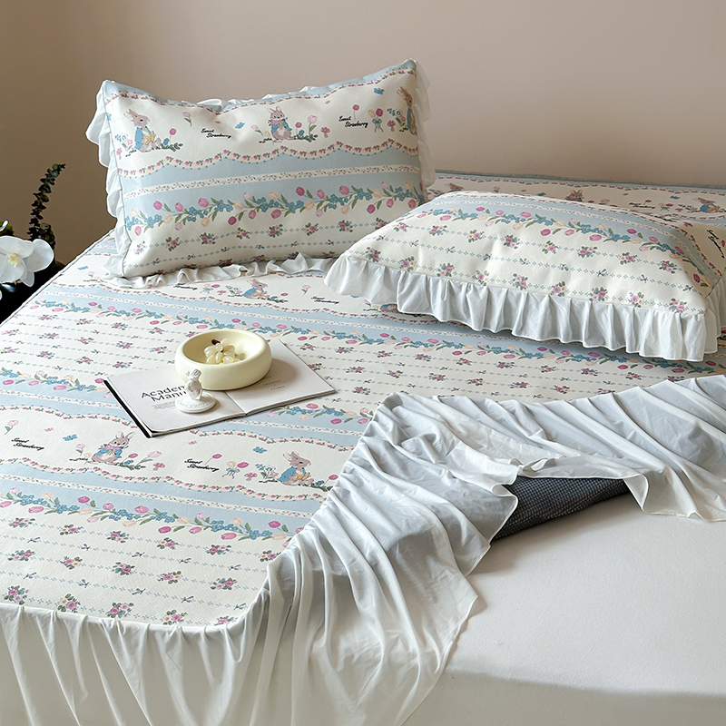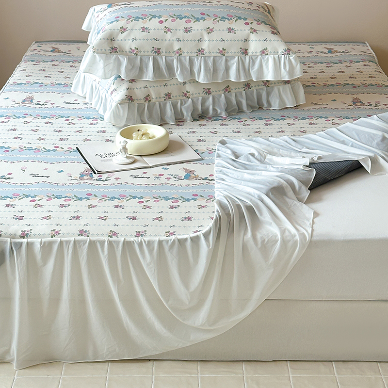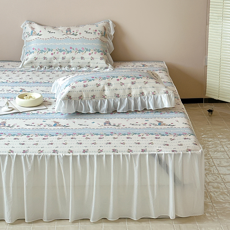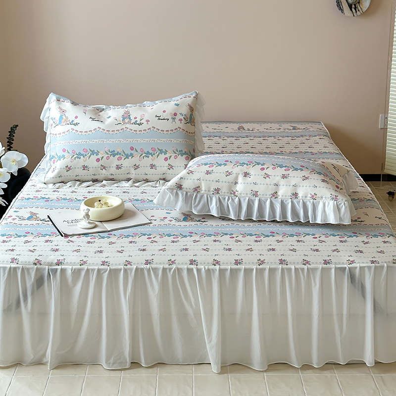 昔可 2024新款A类900D仙仙雪纺纱床裙款冰丝席三件套 郁金香布兰兔