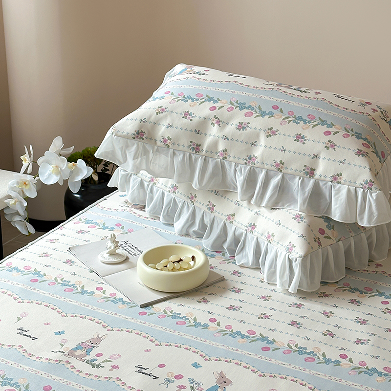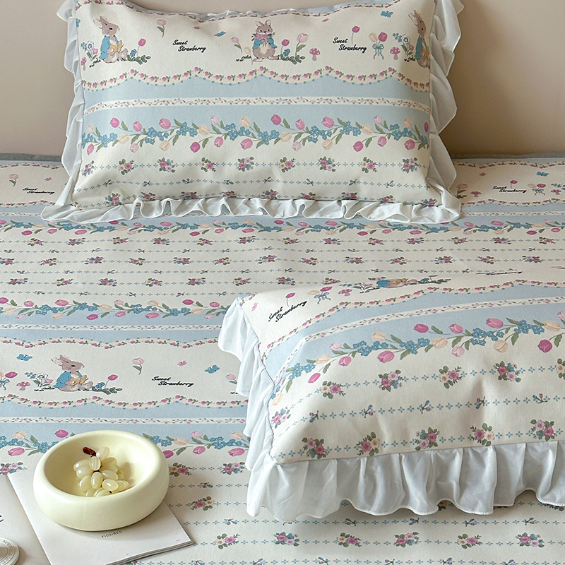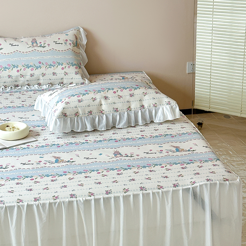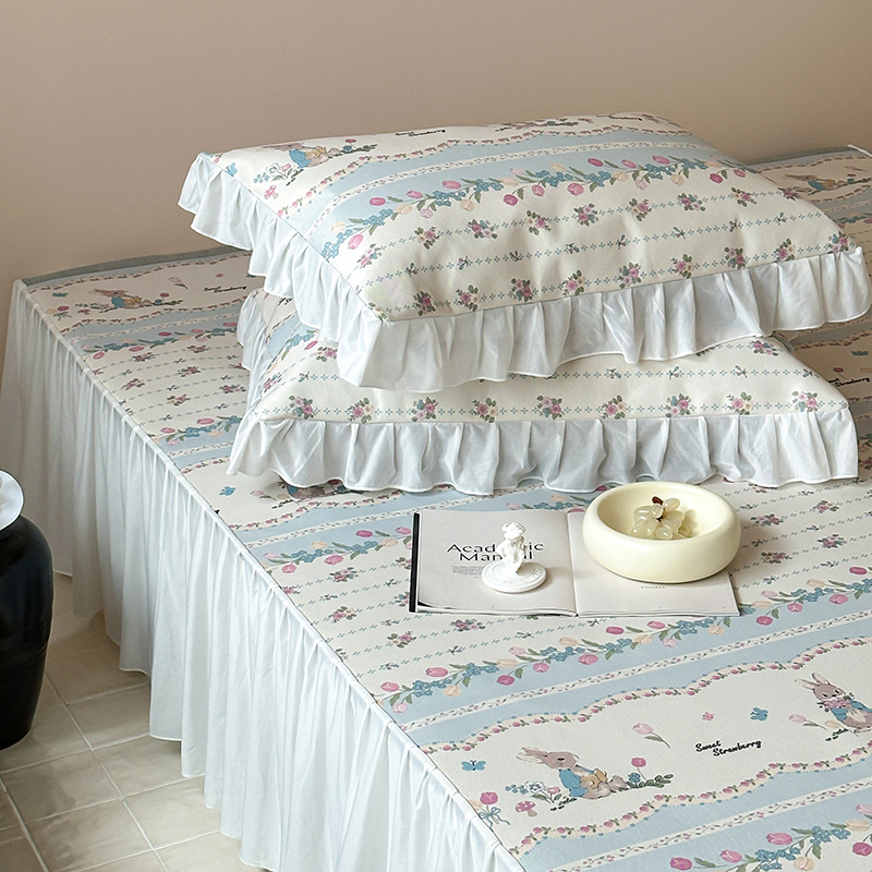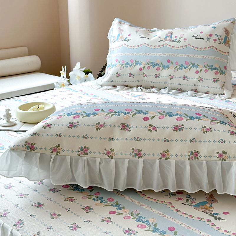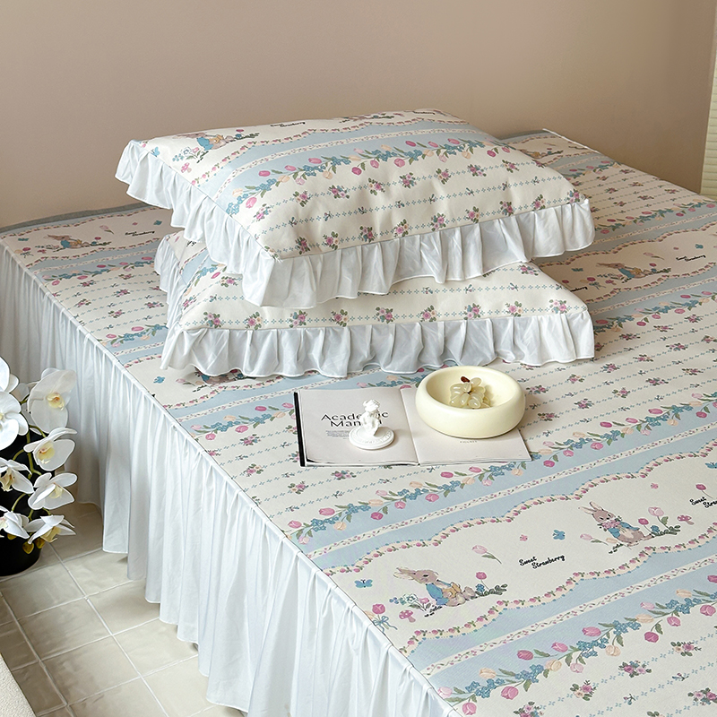 商品名称:昔可 2024新款A类900D仙仙雪纺纱床裙款冰丝席三件套 郁金香布兰兔