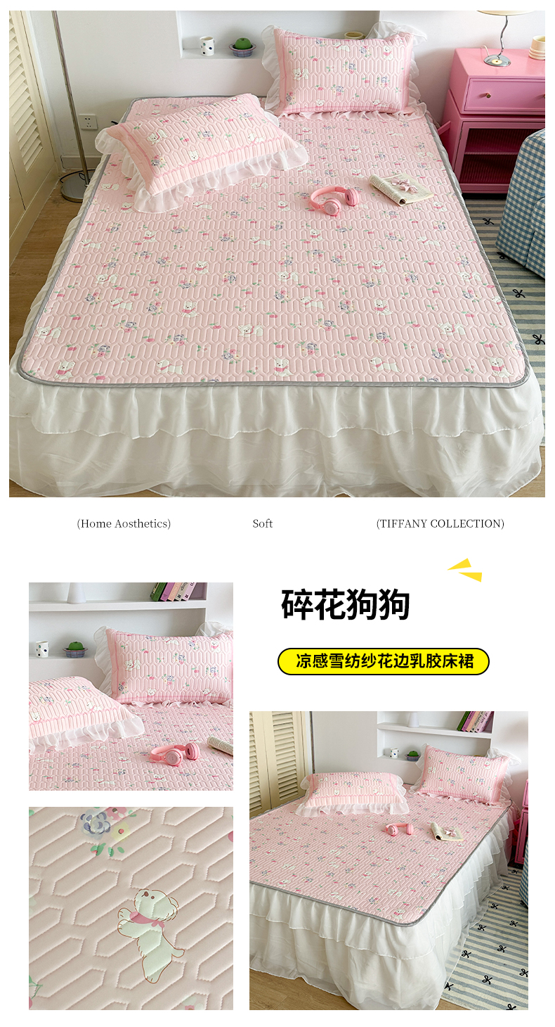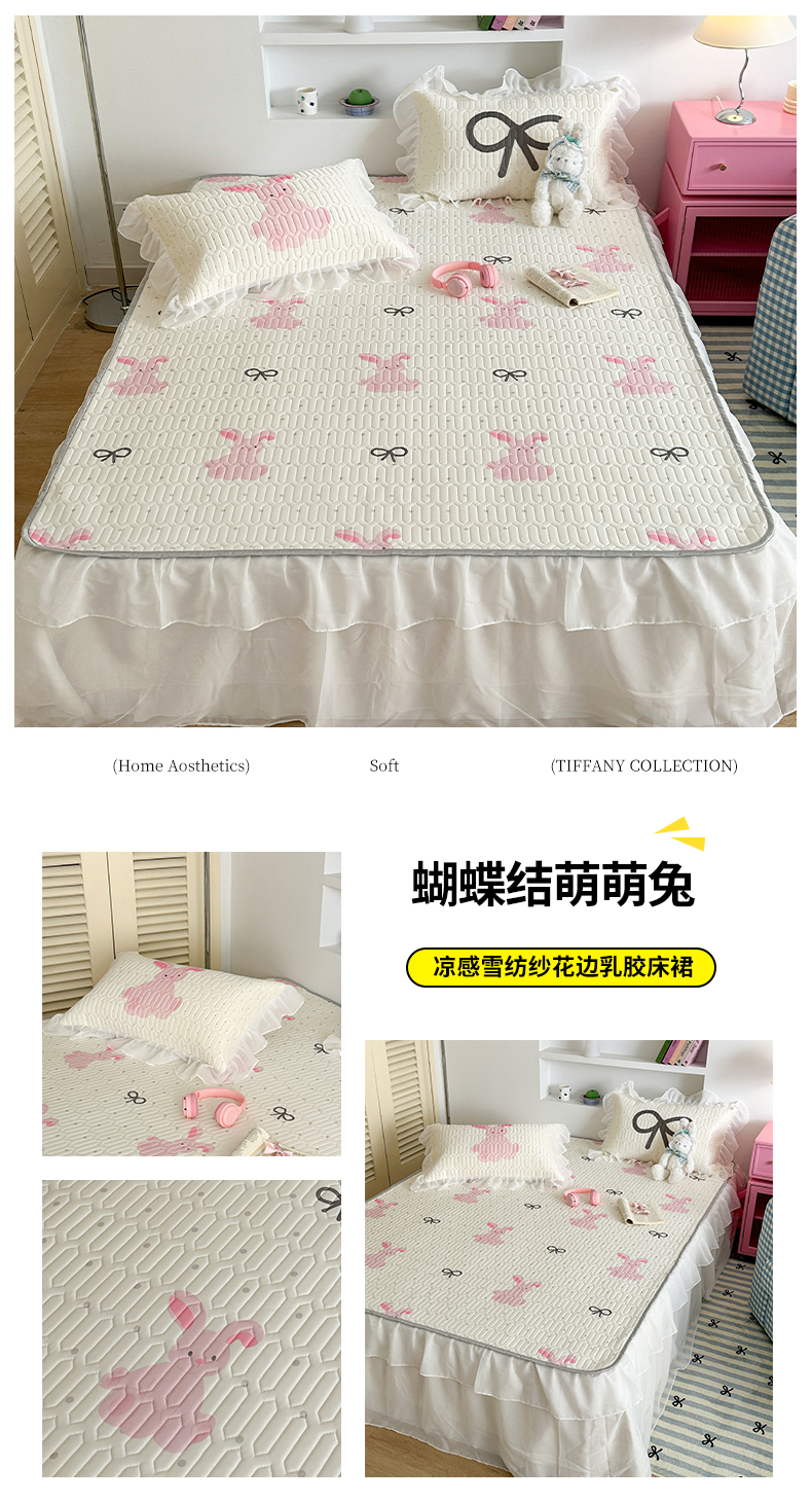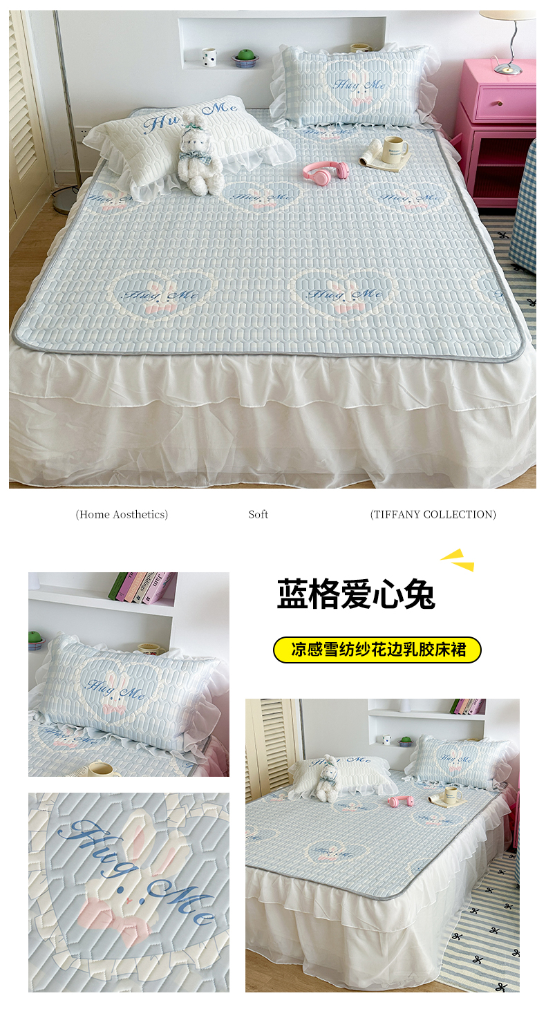 (总)昔可 新款床裙款乳胶凉席双层雪纺纱乳胶凉席三件套