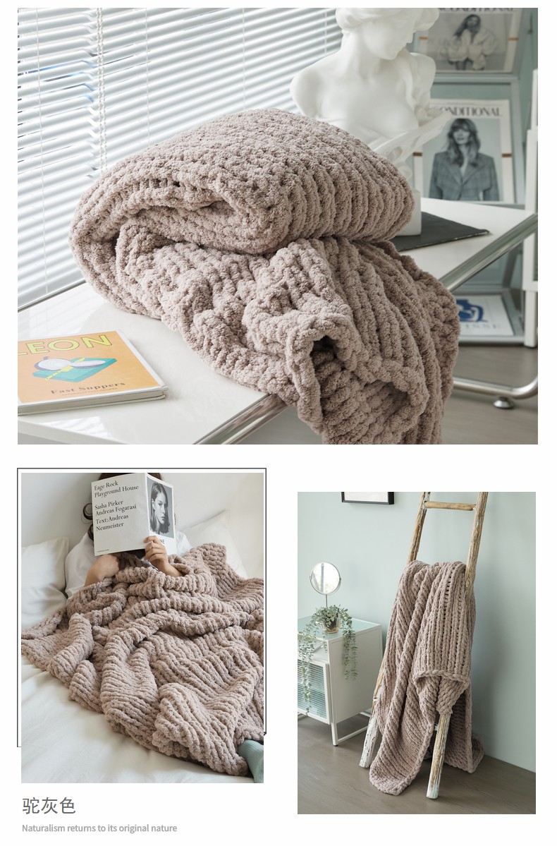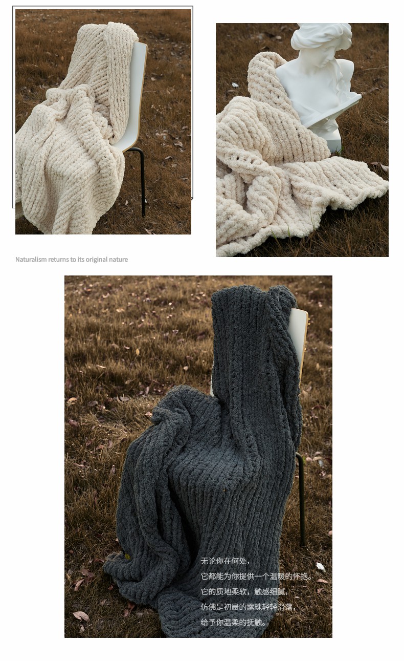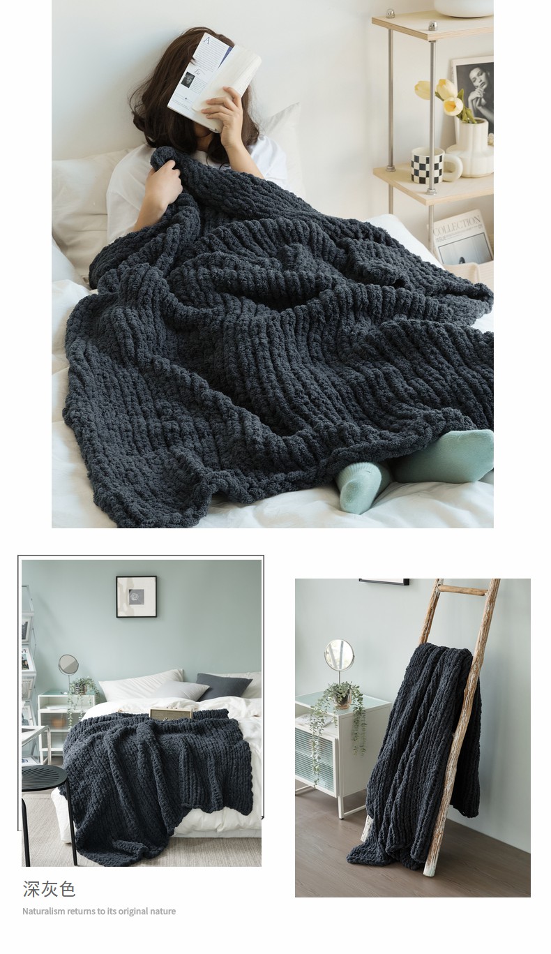 商品名称:暖绵绵家纺 2025新新款雪尼尔条纹针织毯-薇斯琦 深灰