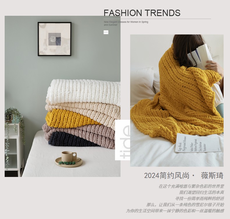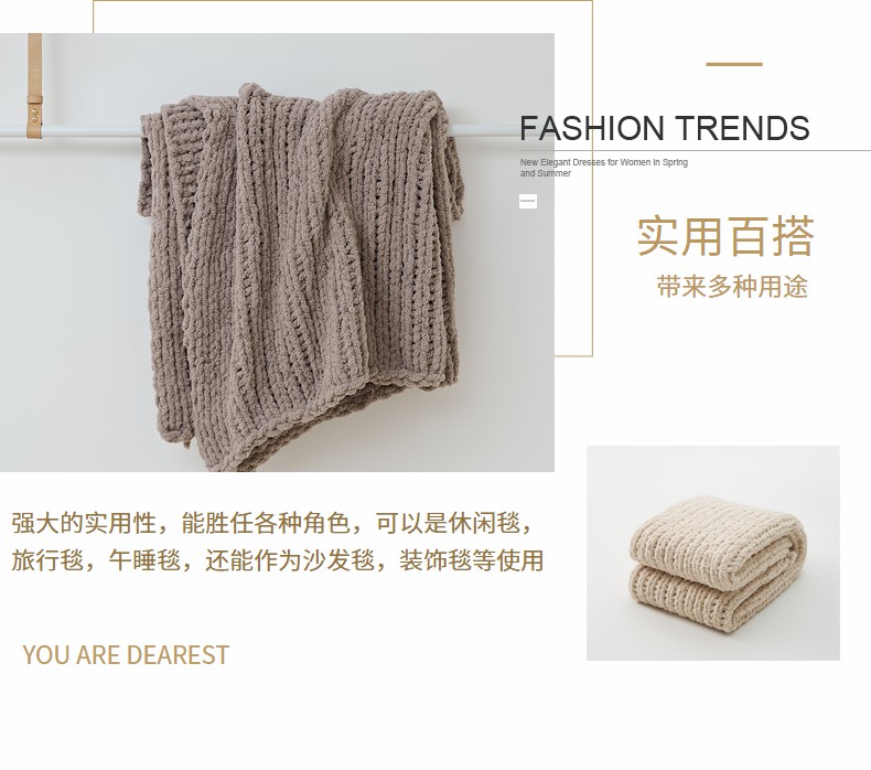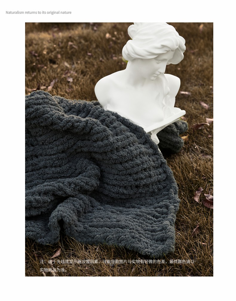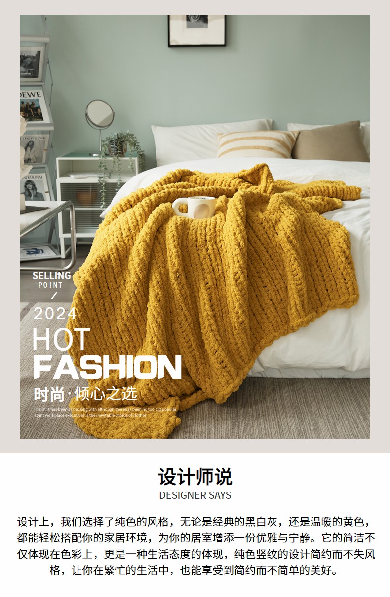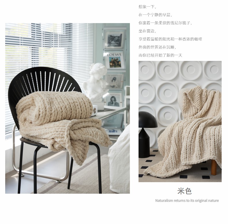 商品名称:暖绵绵家纺 2025新新款雪尼尔条纹针织毯-薇斯琦 深灰
