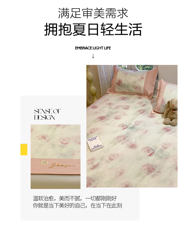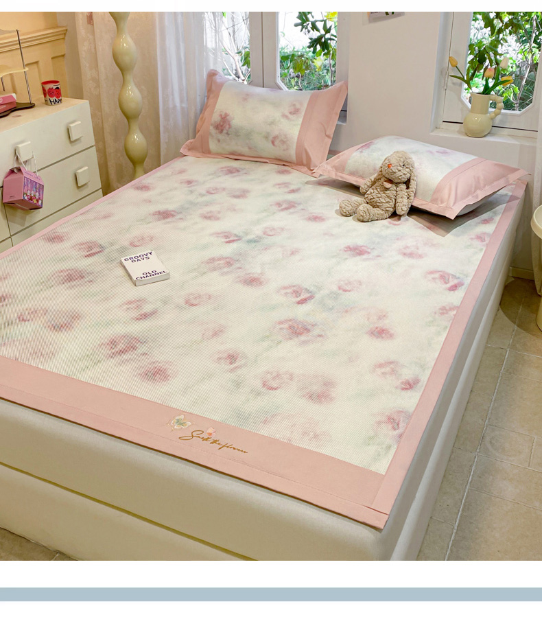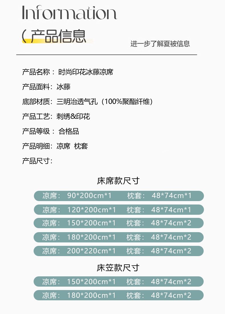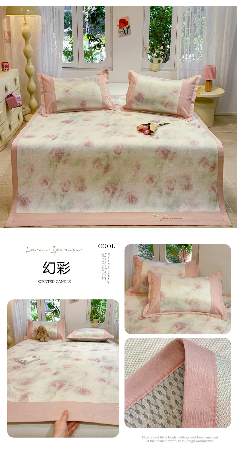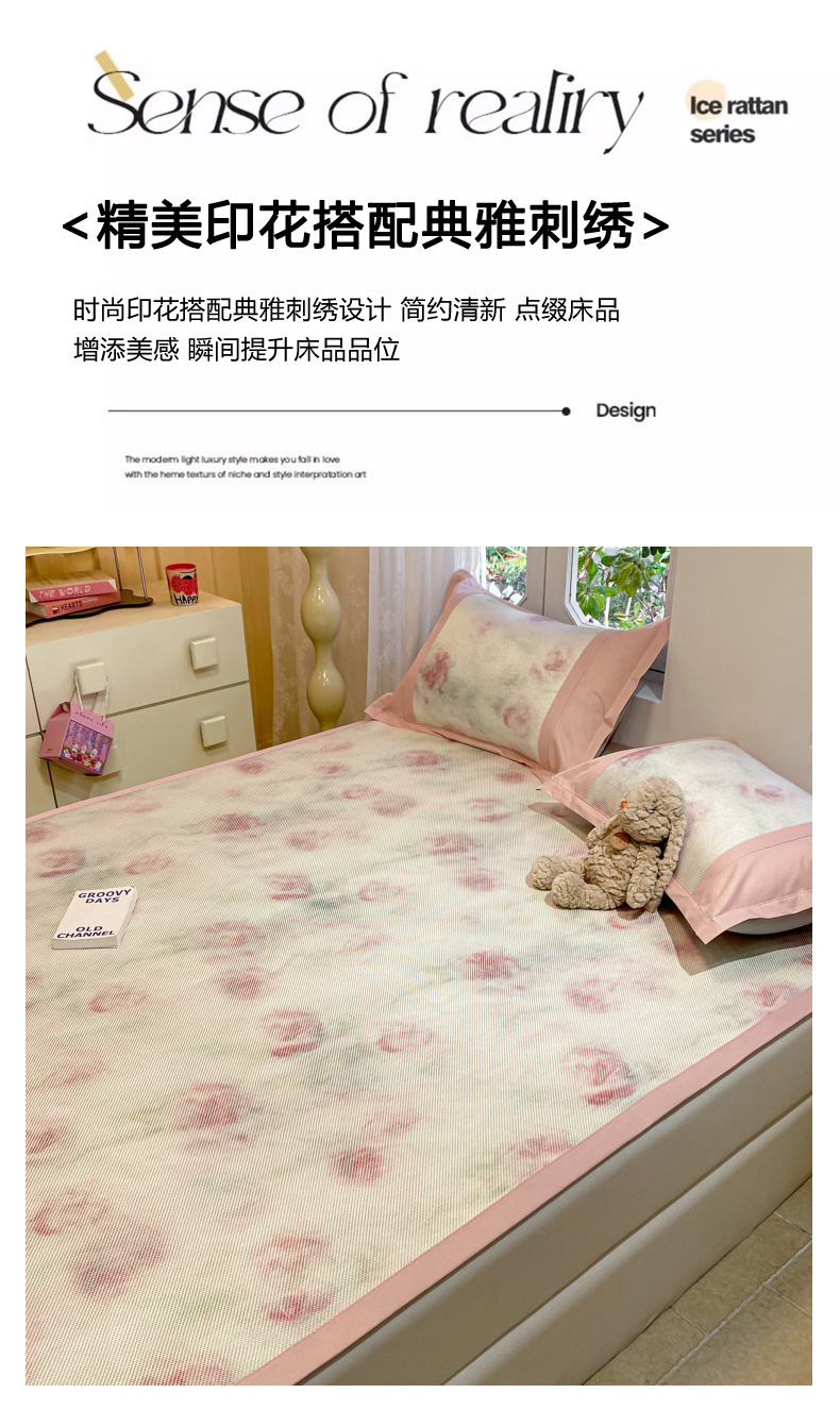 商品名称:慕澄2024新款A类时尚印花刺绣冰藤凉席 床笠款-幻彩