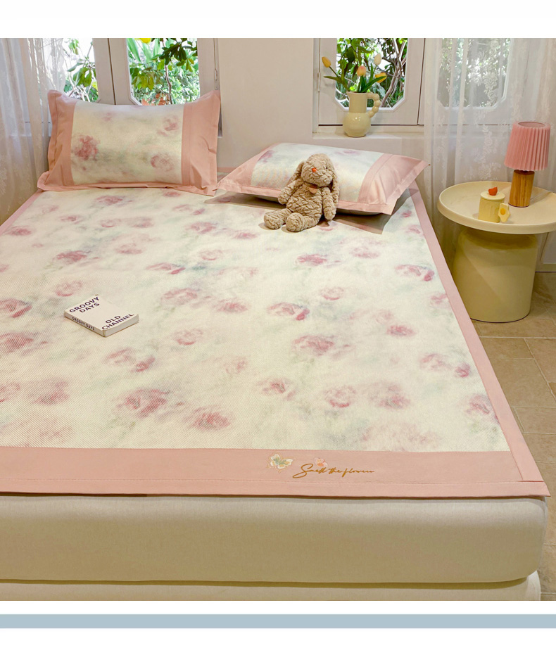 慕澄2024新款A类时尚印花刺绣冰藤凉席 床笠款-幻彩