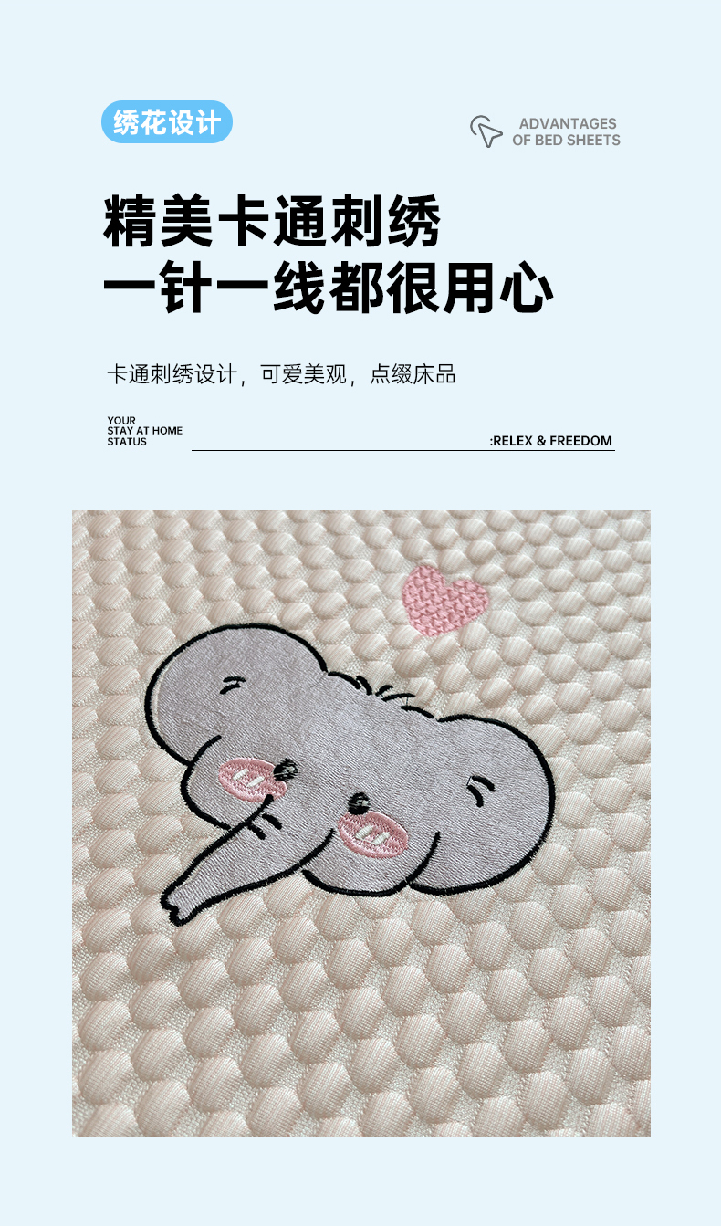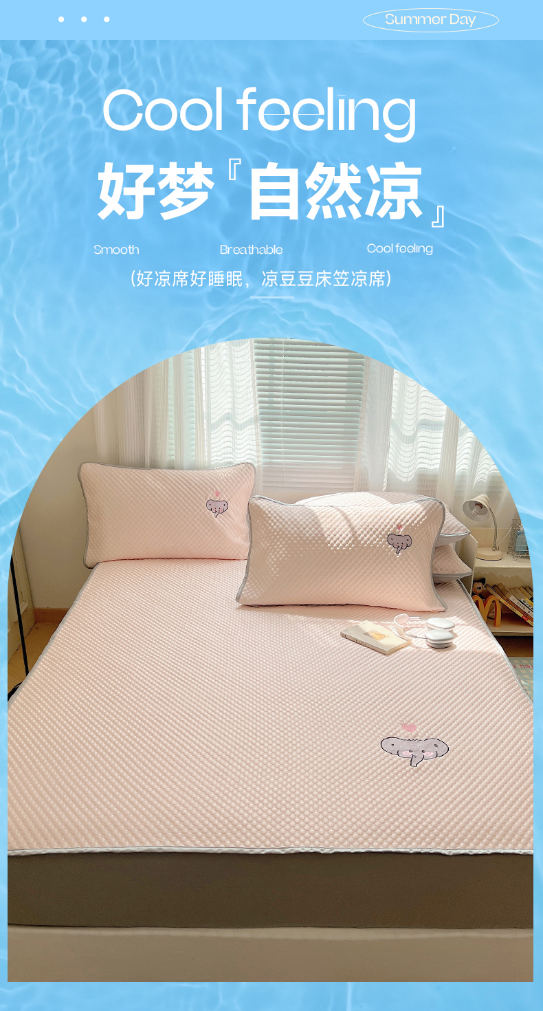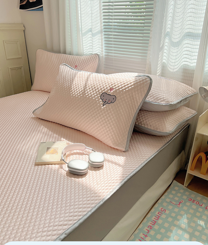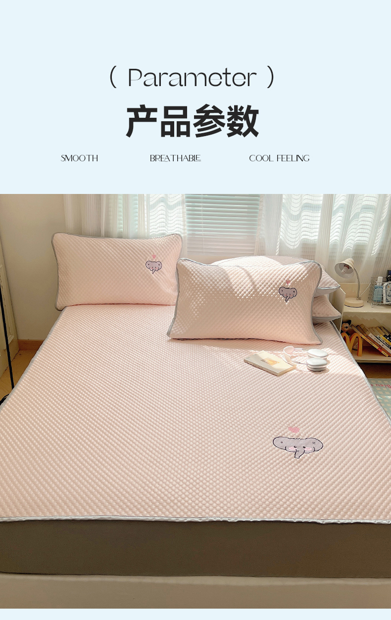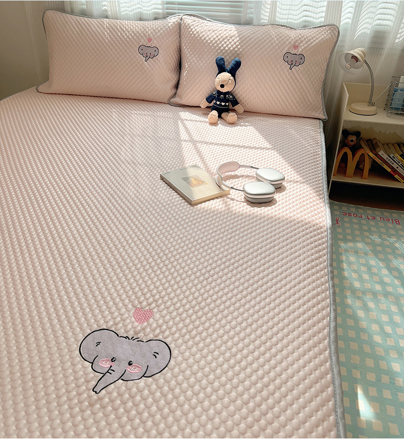 • 91家纺网 家纺一手货源 找家纺 红嘴企鹅 2025新款凉豆豆绣花床笠凉席 爱心小象-粉