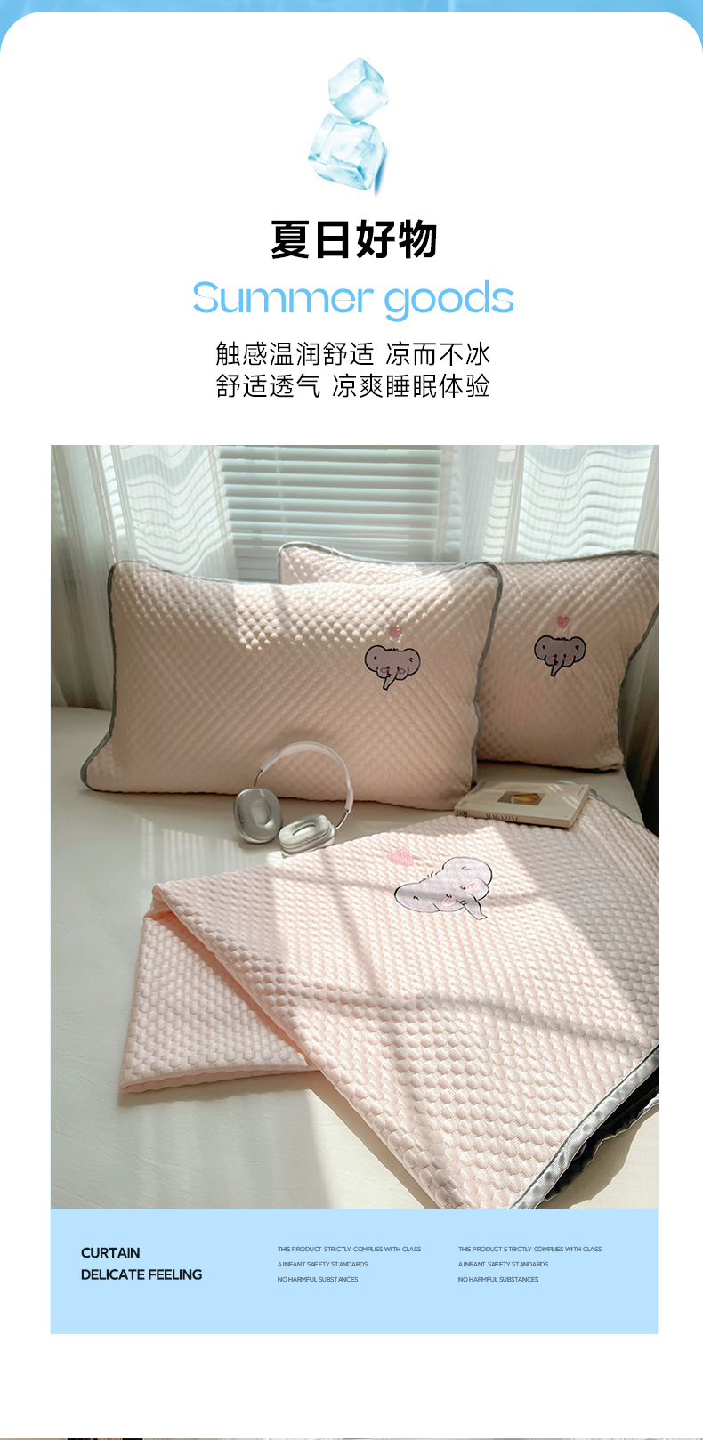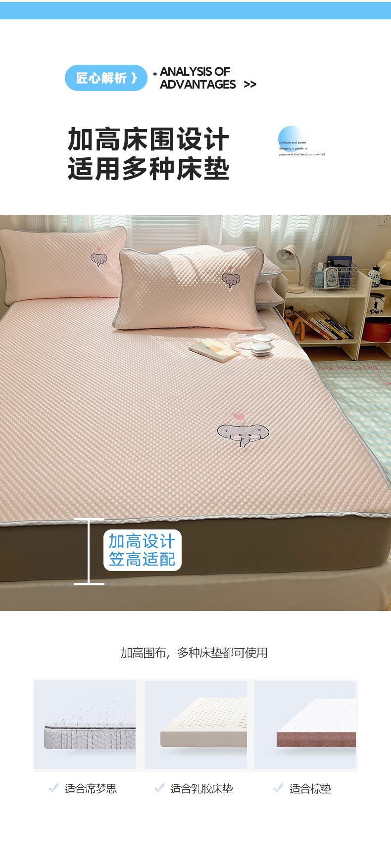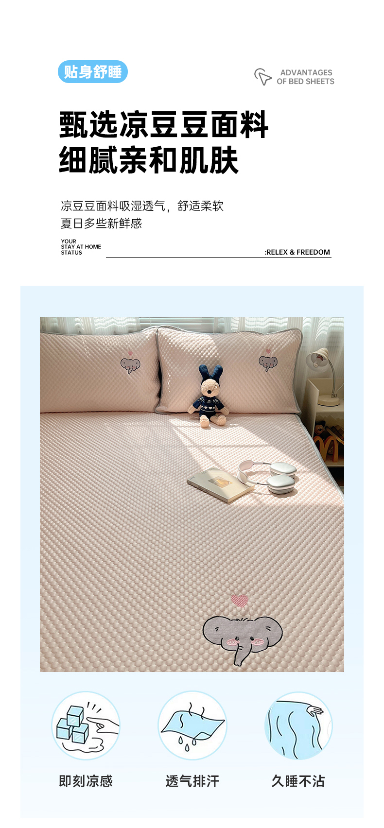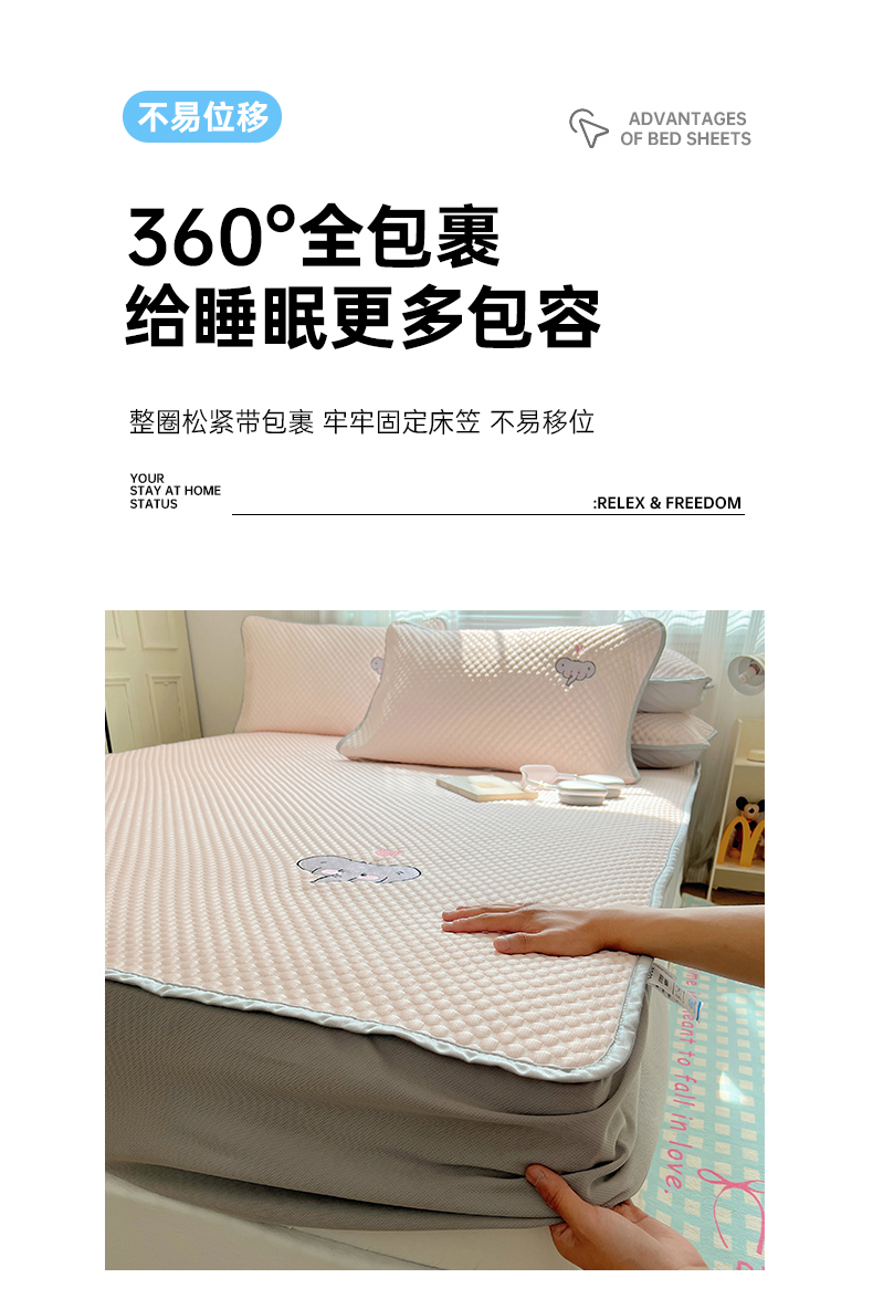 • 91家纺网 家纺一手货源 找家纺 红嘴企鹅 2025新款凉豆豆绣花床笠凉席 爱心小象-粉