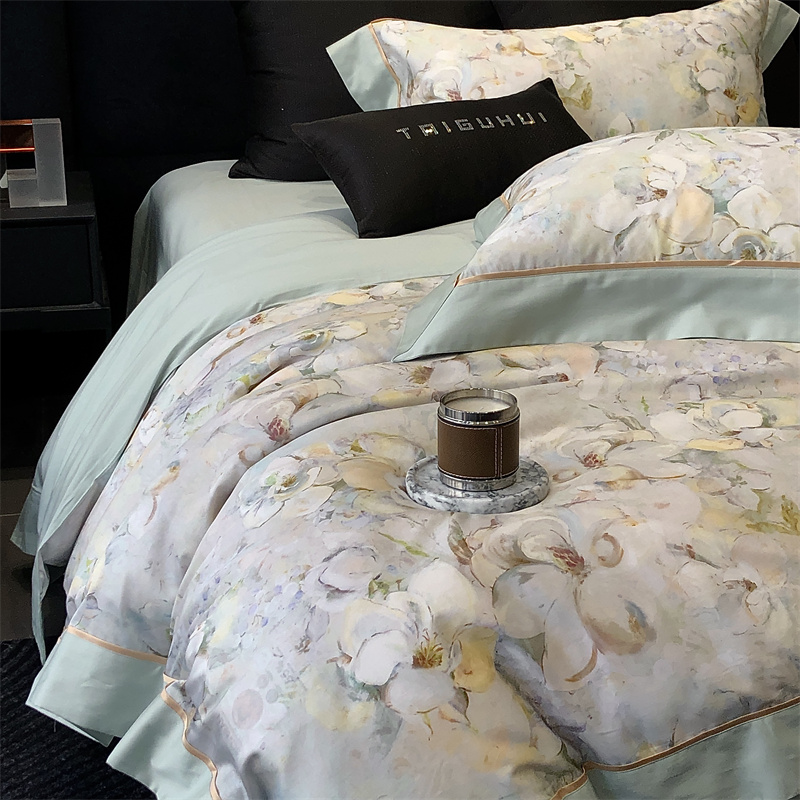 (总)太古汇家居 2025新款活性数码印花四件套,丽奥娜-松石绿,丽奥娜-杏子灰,丽奥娜-樱落紫,莉安娜-粉,莉安娜-卡其,莉安娜-绿,西莉娅-淡紫,西莉娅-粉色