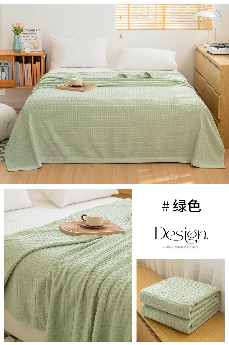 商品名称:乐家毛巾被(工厂自产自销) 2024新款简约方块格毛圈 绿色