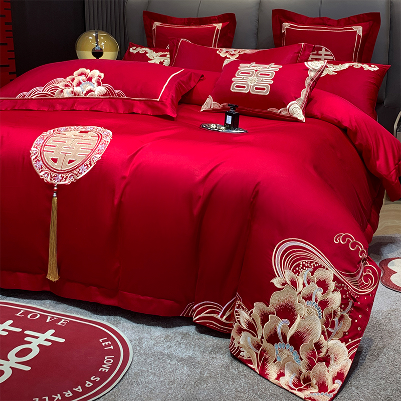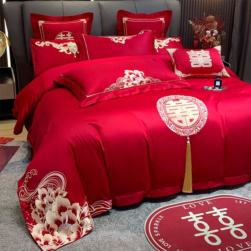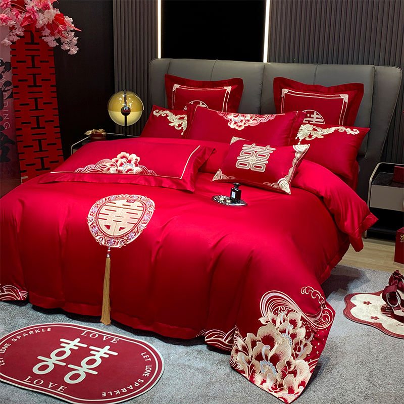 当前位置: 91家纺网 > 商品网购 > 床品套件 > 多件套 > 多件套 > 用心 2024新款全棉高端婚庆绣花四件套初恋