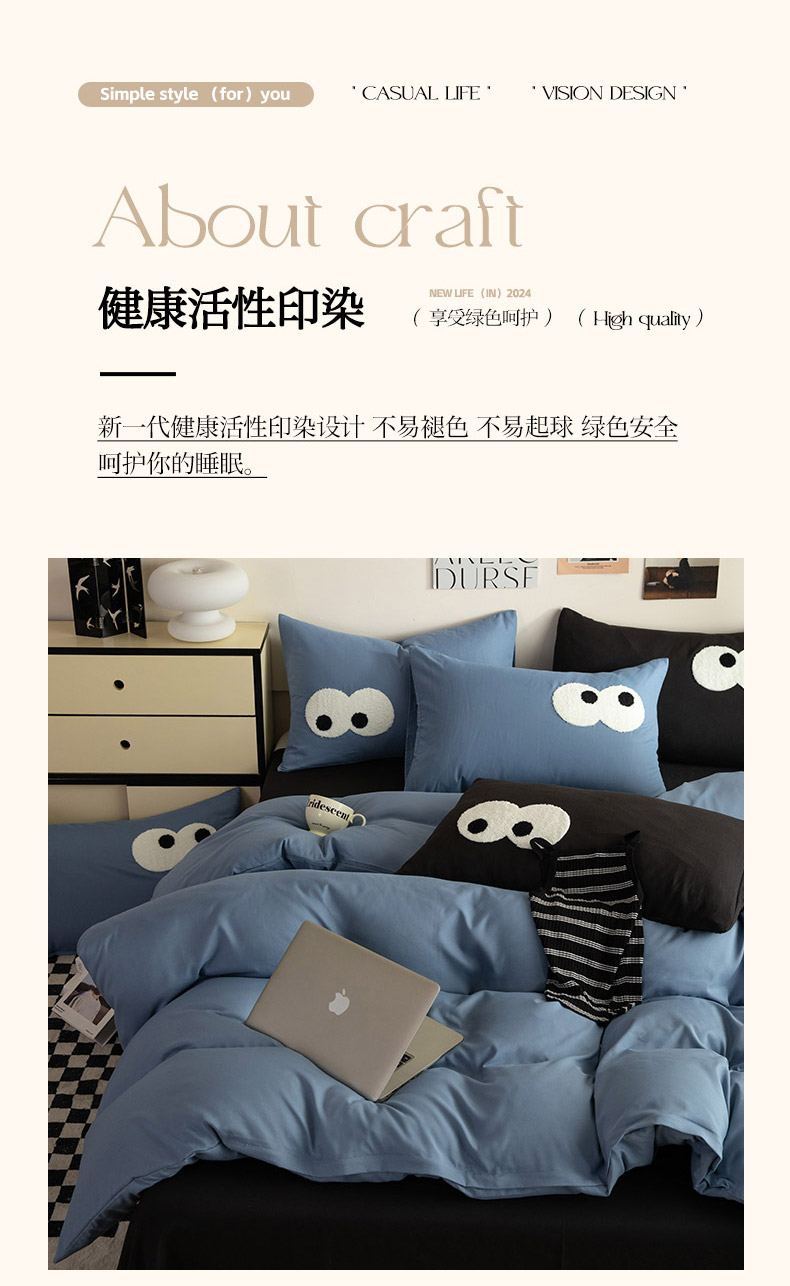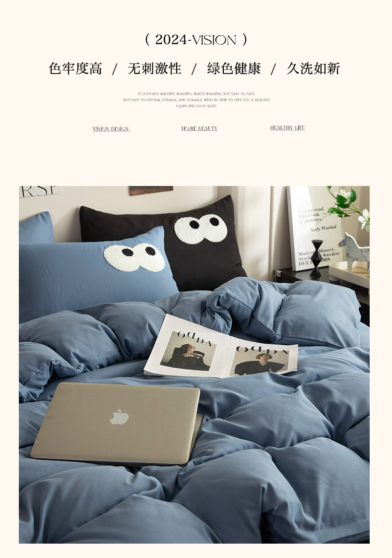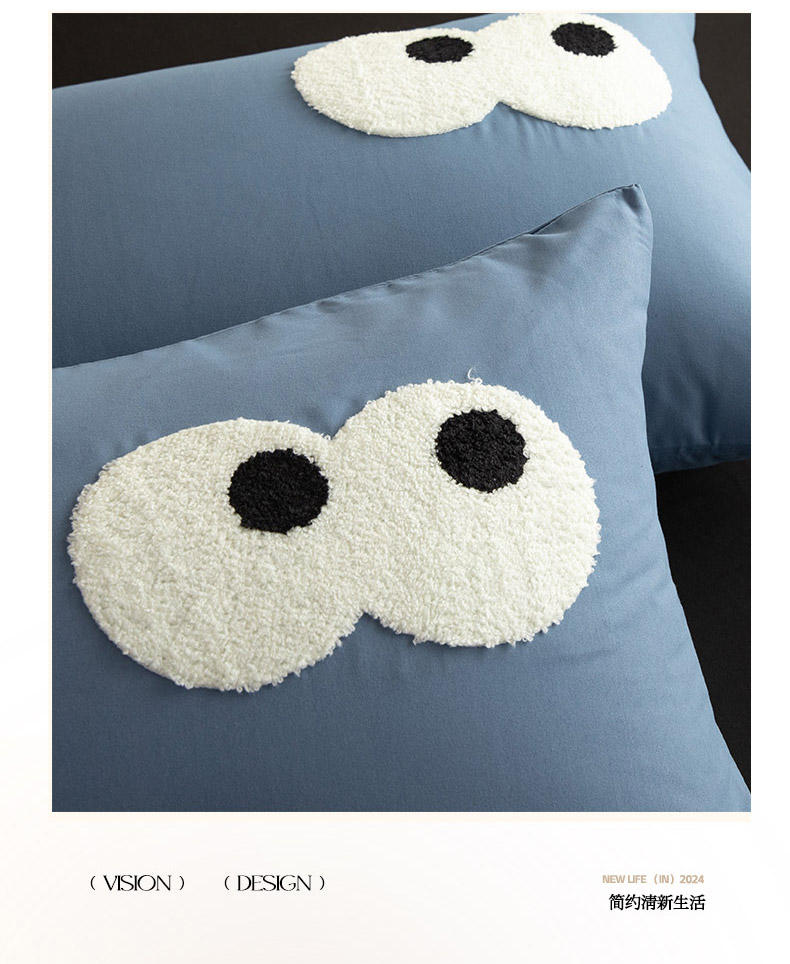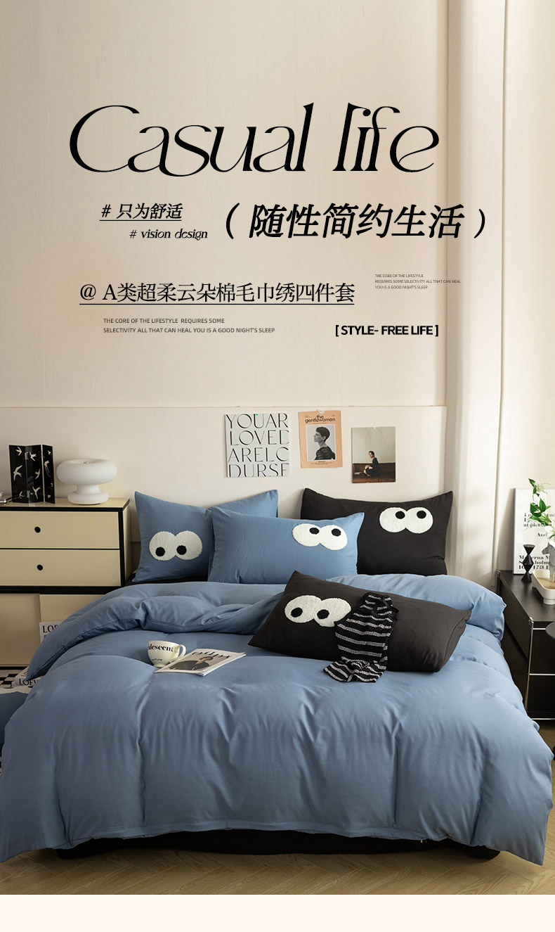当前位置: 91家纺网 > 商品网购 > 床品套件 > 四件套 > 毛巾绣四件套 > 妖妖家纺 2024新款超柔水洗棉毛巾绣四件套(眼睛) 大眼睛-低调蓝+深蓝