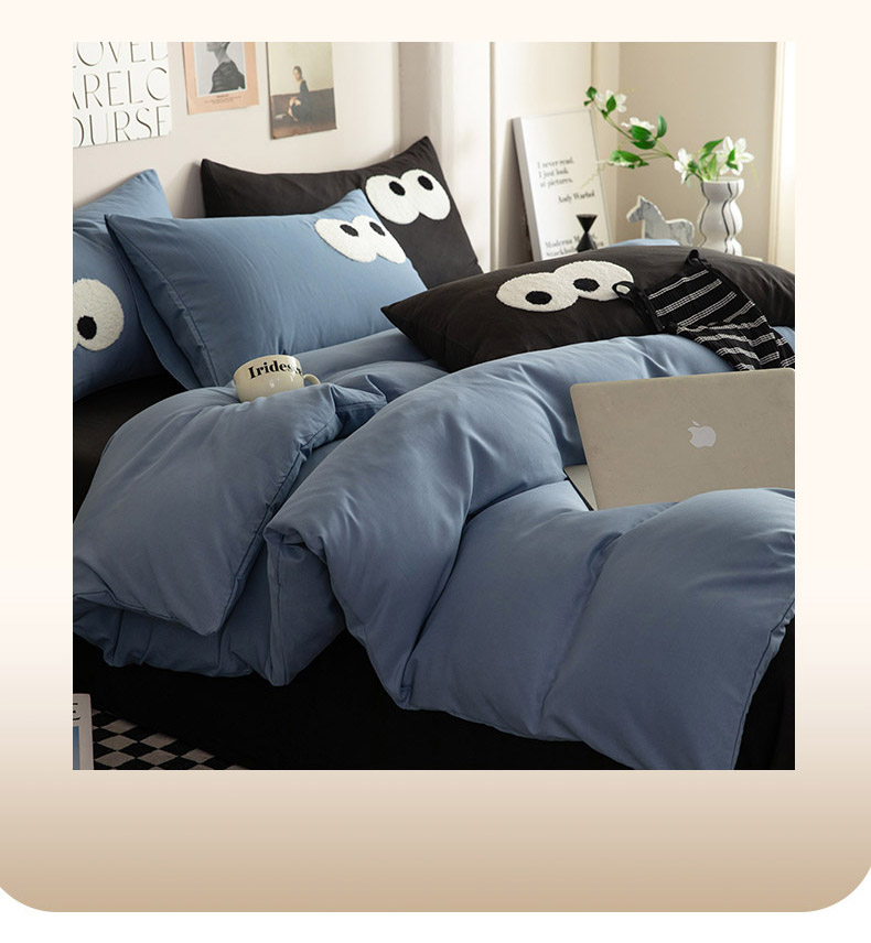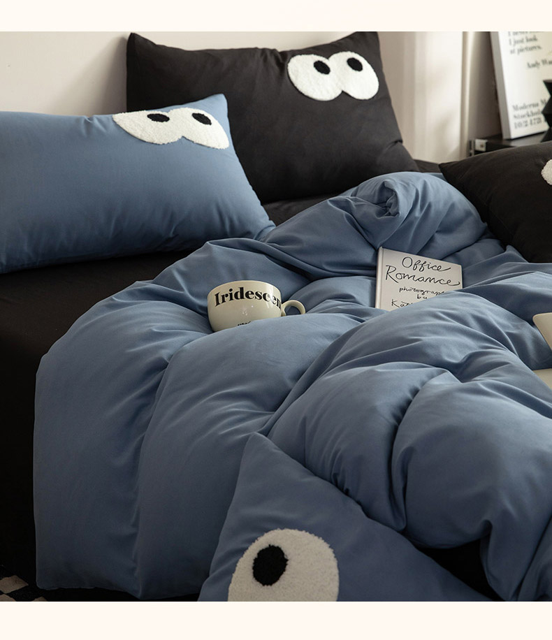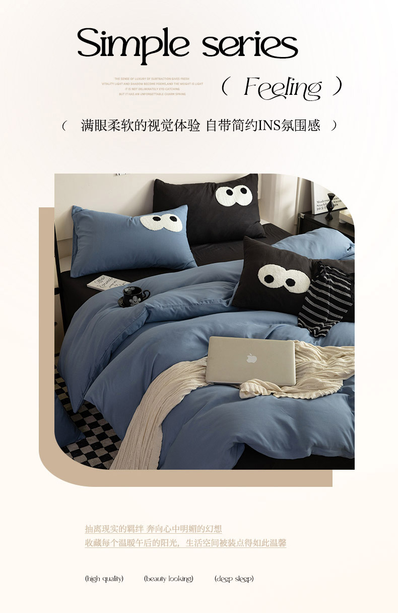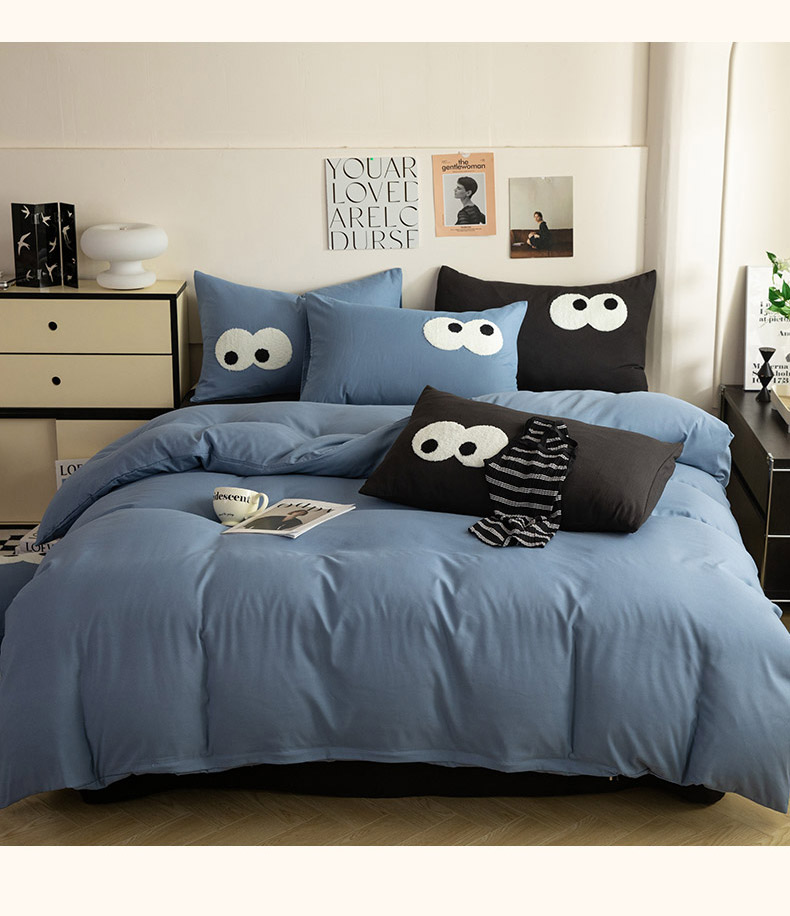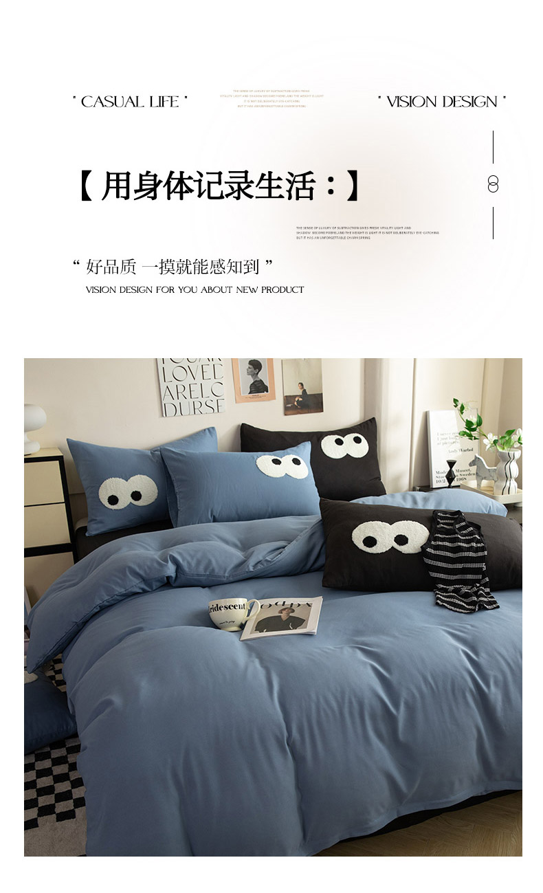 当前位置: 91家纺网 > 商品网购 > 床品套件 > 四件套 > 毛巾绣四件套 > 妖妖家纺 2024新款超柔水洗棉毛巾绣四件套(眼睛) 大眼睛-低调蓝+深蓝