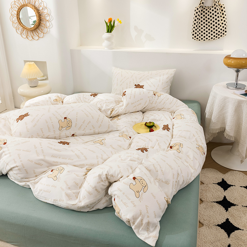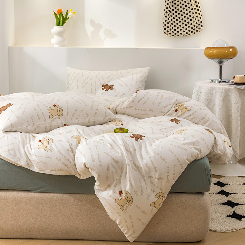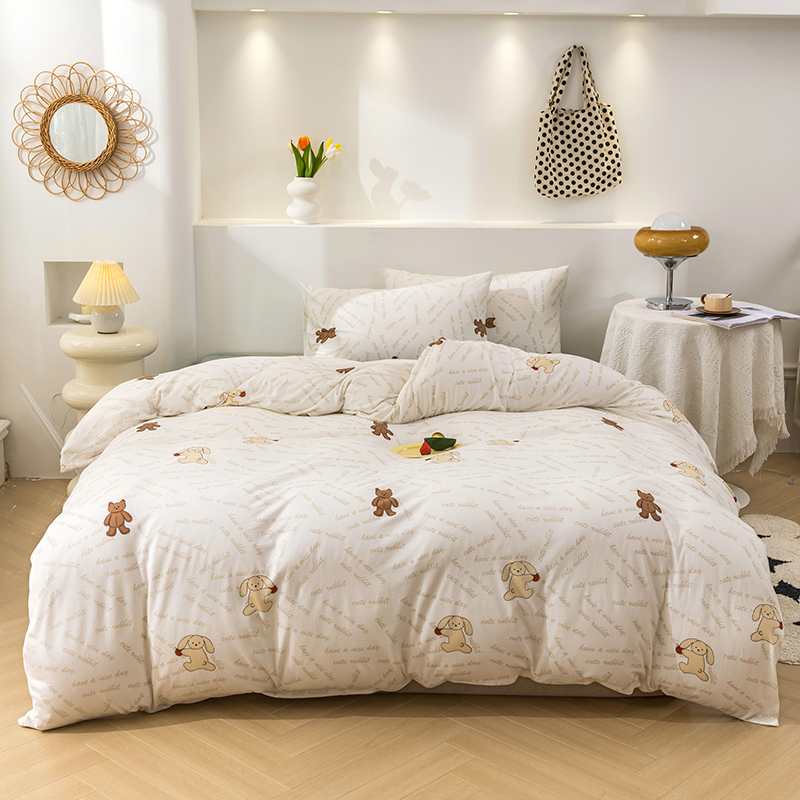 商品名称:优姿家纺2024新款A类全棉针织棉系列四件套 菲尔熊-绿