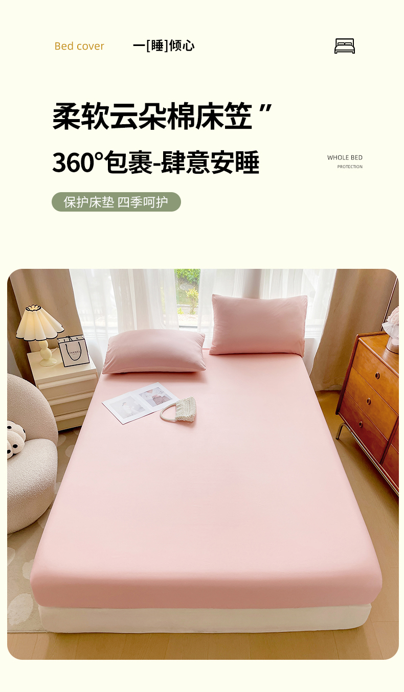 商品名称:宏源家纺 2024新款超柔水洗云朵棉床笠 粉