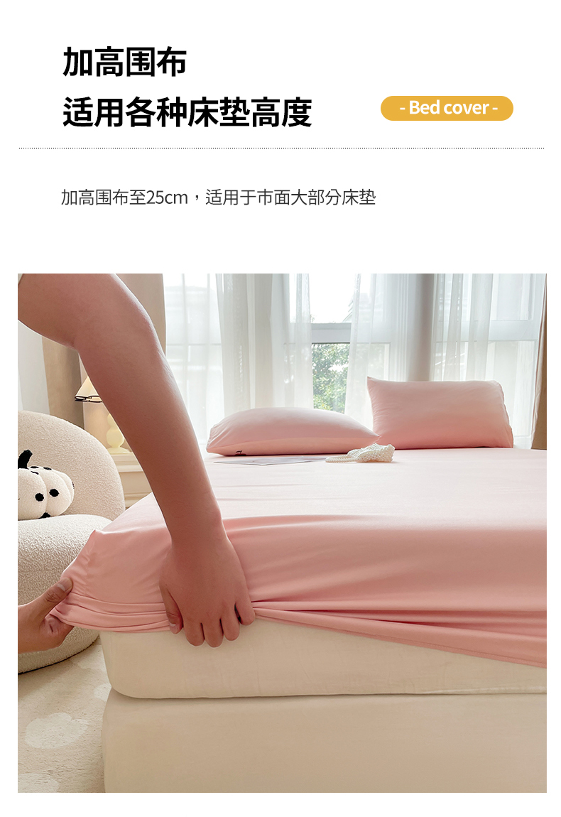 宏源家纺 2024新款超柔水洗云朵棉床笠 粉