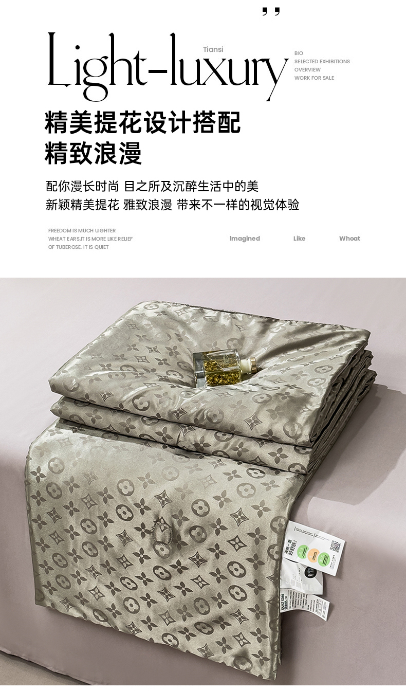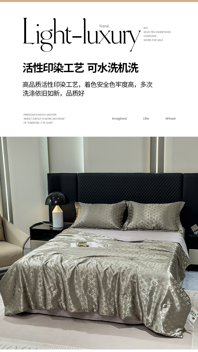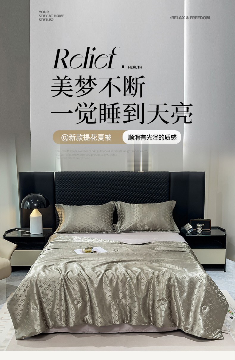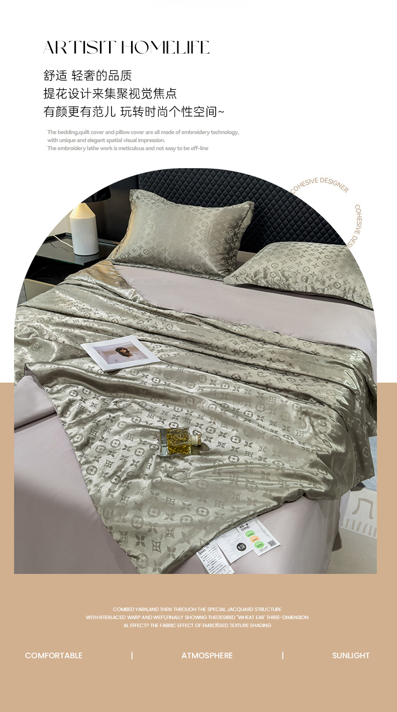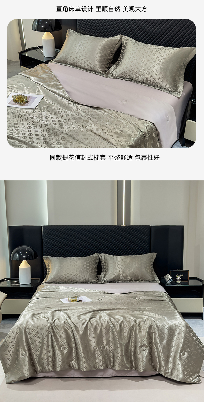 (总)莱欧纳家纺 2025新款提花夏被四件套,豆沙,灰色,香槟,紫色