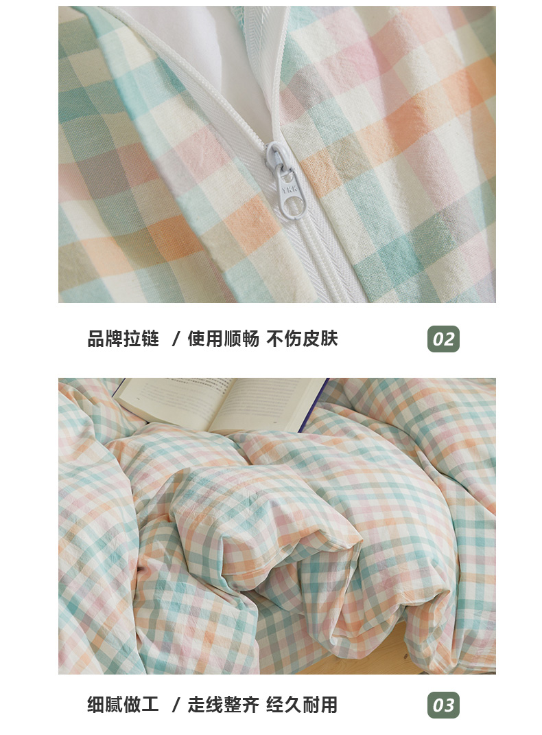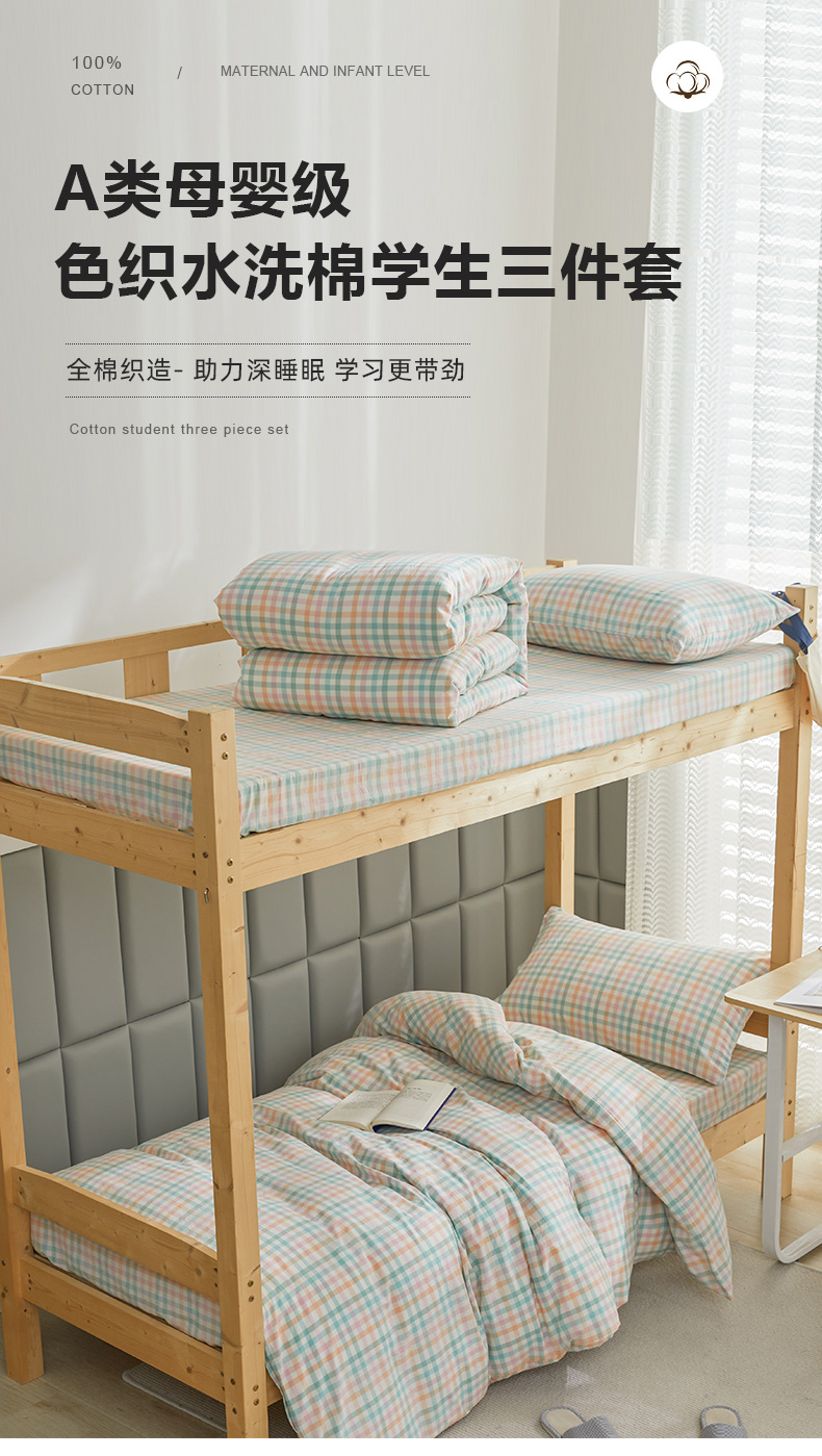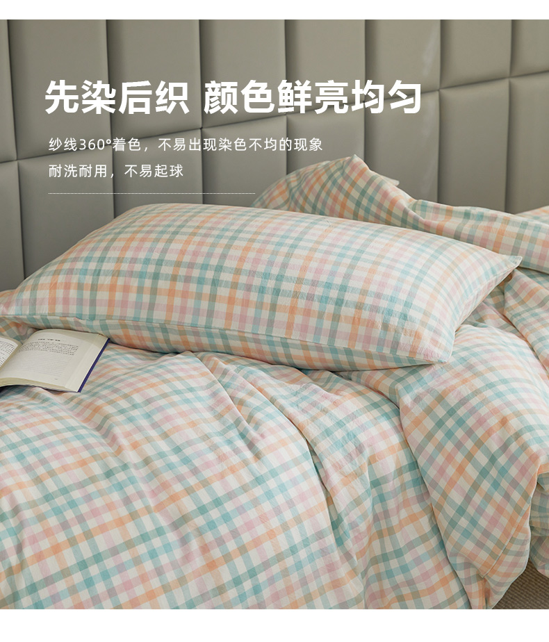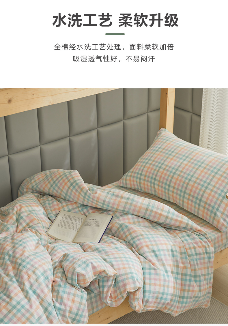 当前位置: 91家纺网 > 商品网购 > 床品套件 > 四件套 > 全棉普通四件套 > 柠萌家居 2025新品A类全棉色织水洗棉简约条纹格子无印良品风格学生季宿舍上下铺AA版三件套四件套 小彩格