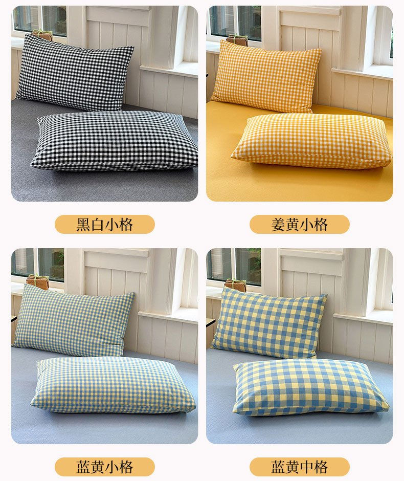 商品名称:北欧良品 2024新款A类全棉色织水洗棉单枕套 蓝黄小格