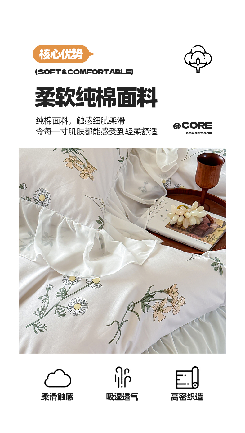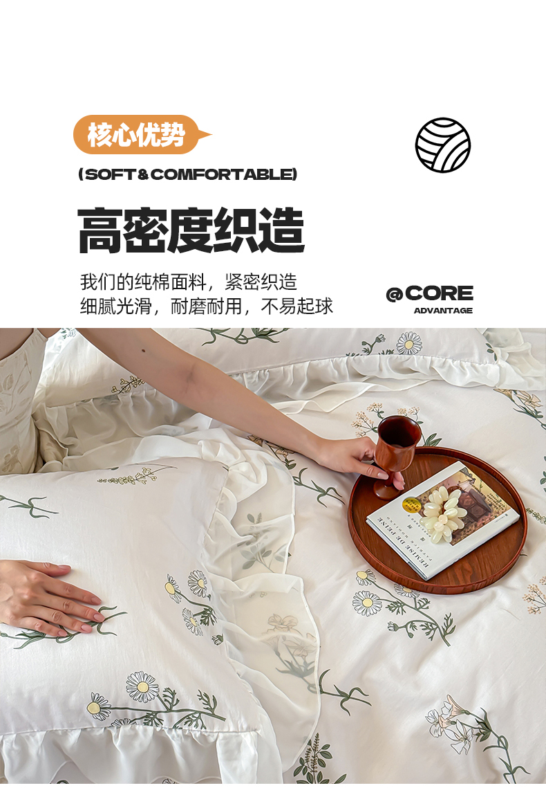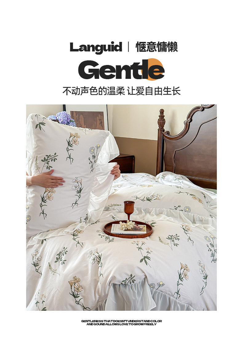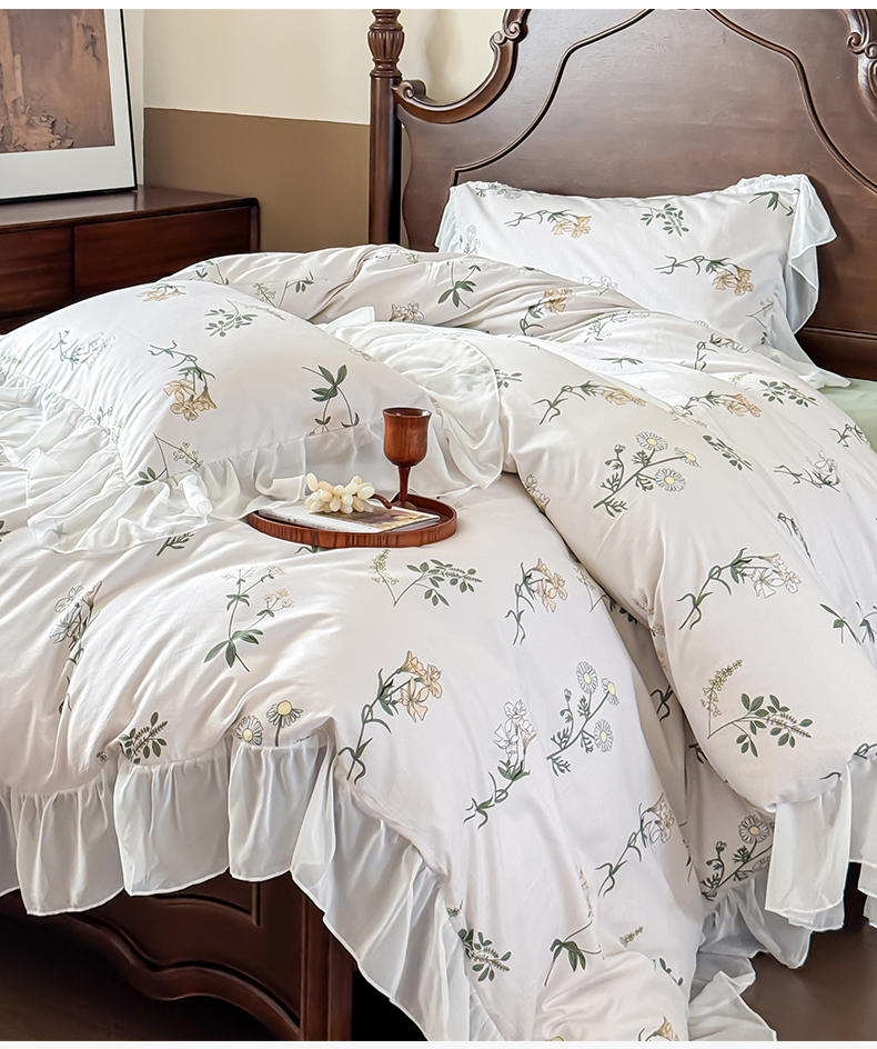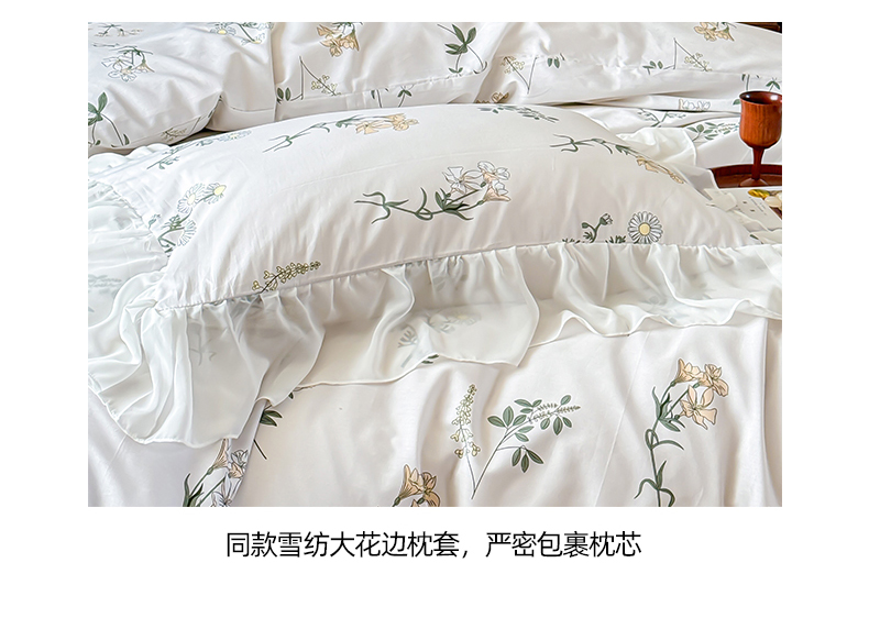 (总)窝米 2025新款数码印花100支长绒棉纯棉工艺花边款四件套-晚意,晚意